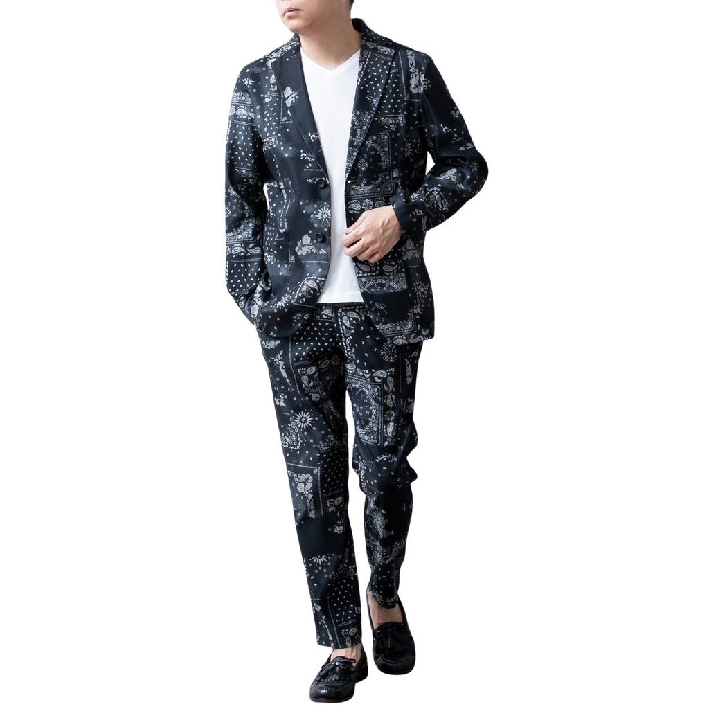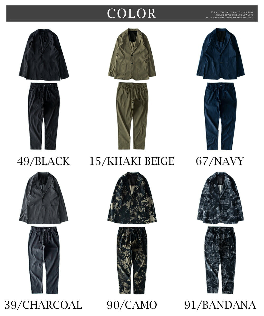 商品情報: 夏 ストレッチ 卒業式 ギフト カジュアル ブラック テレワーク ブルゾン スーツ ネイビー バンダナ ゴルフウェア 通勤 入学式 春 カーキベージュ 春服 チャコール カモフラージュ 迷彩 ペイズリー セレモニースーツ 紺 プレゼント 上下セットアップ 全4色 ファスナー付き 春物 M L LL XL ジェネレス GENELESS