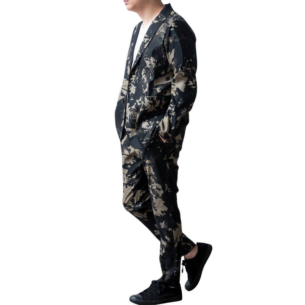 商品名:セットアップ メンズ テーラード ジャケット 洗えるスーツ 接触冷感 超伸縮 吸水速乾 家庭洗濯可能 おしゃれ 涼しい 無地 在宅勤務 カモ メンズファッション セット 黒 長袖 秋