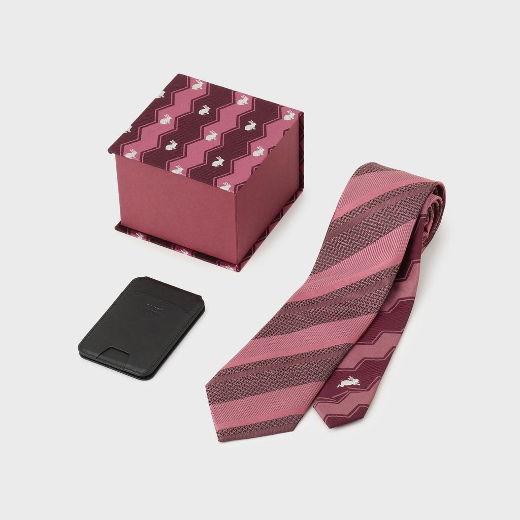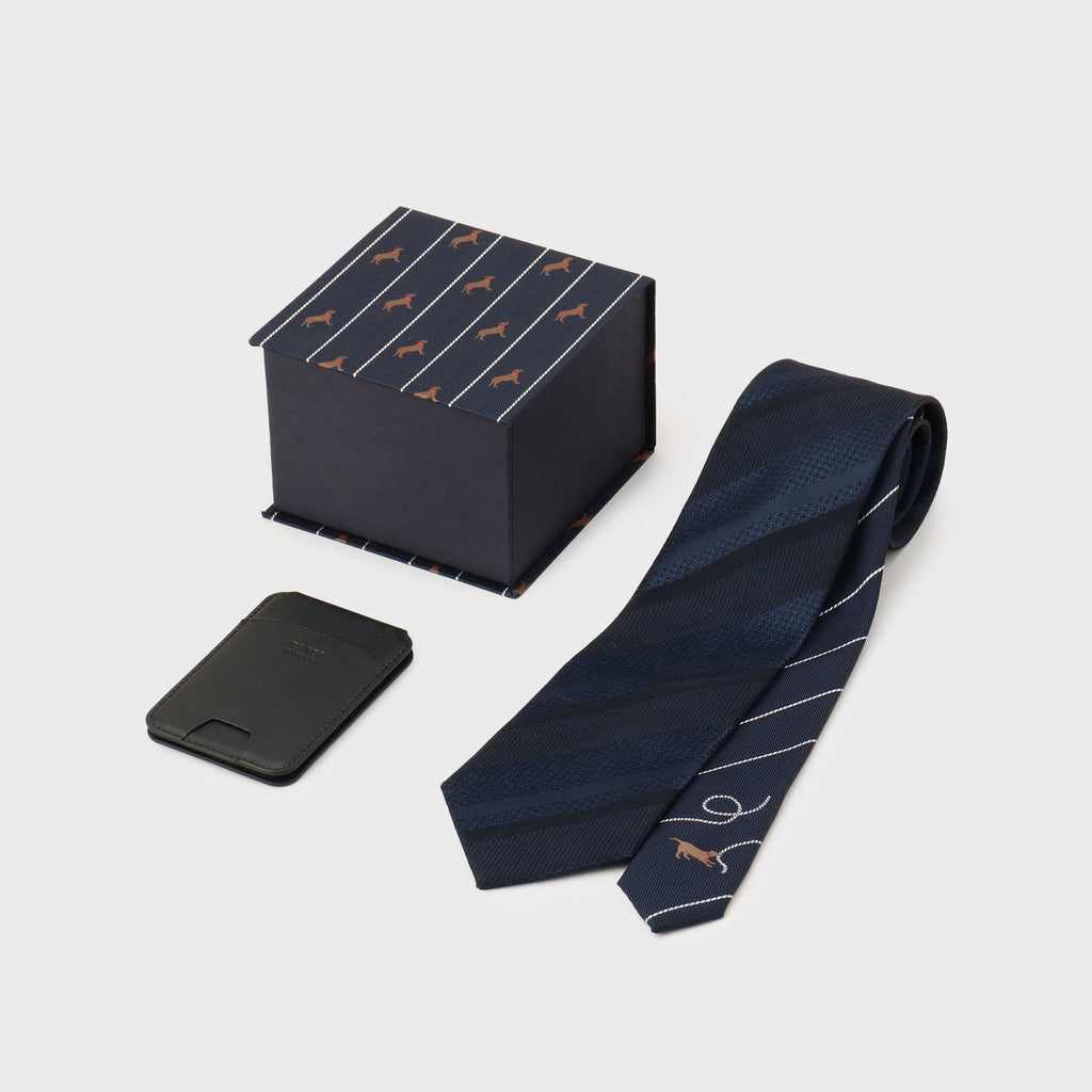 このネクタイセットには、MagSafe対応のスマホスタンドにもなるカードケースが付属。