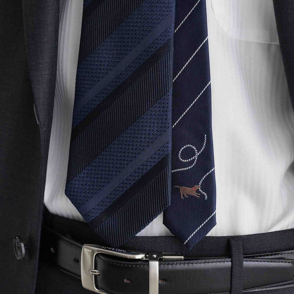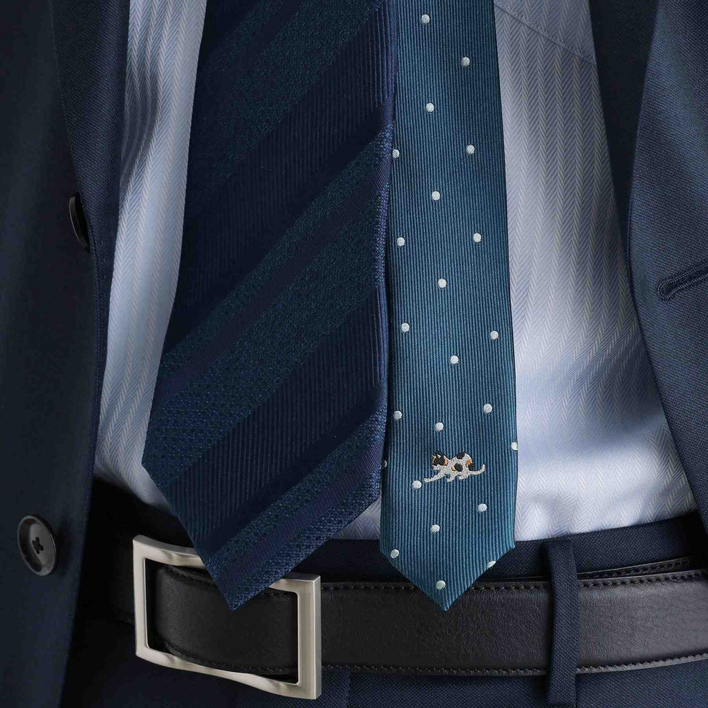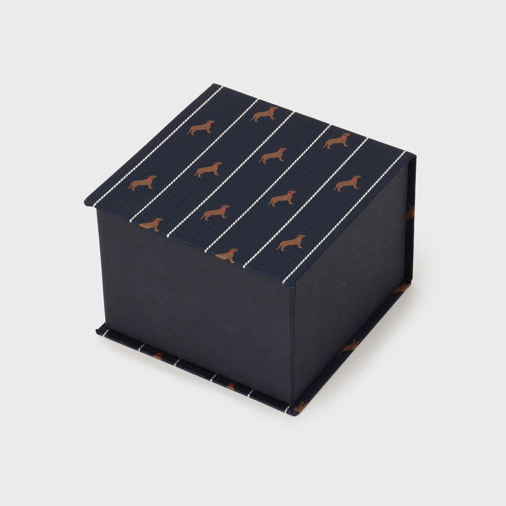 394 ネイビー: 小剣に犬が遊ぶ様子が描かれ、愛らしさ満点。