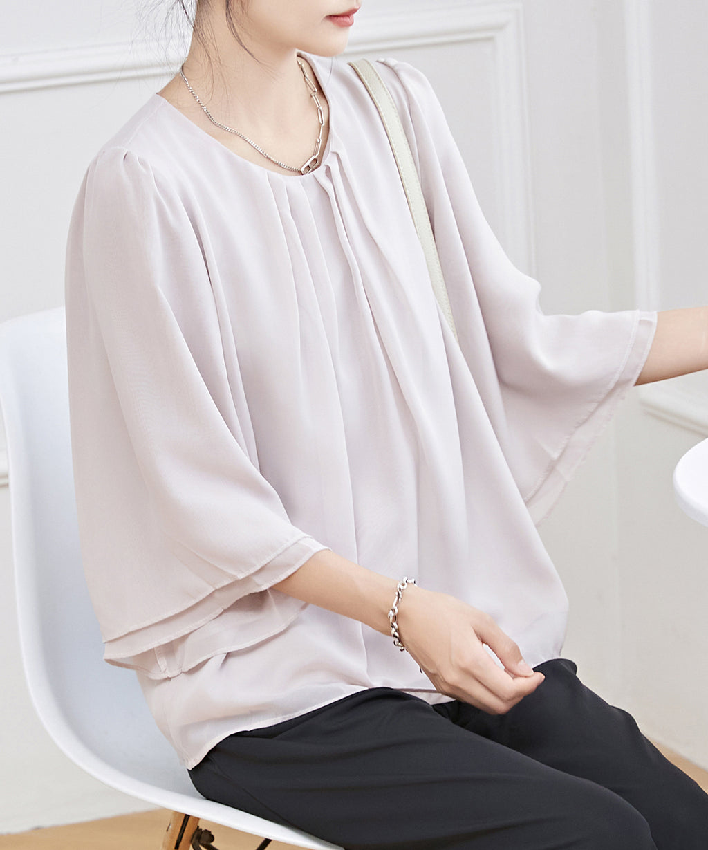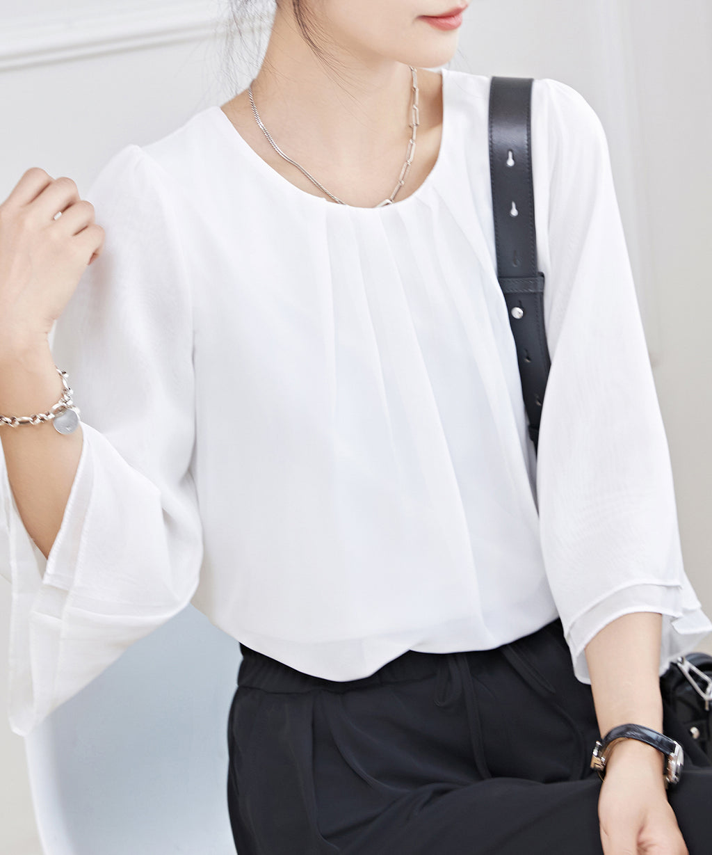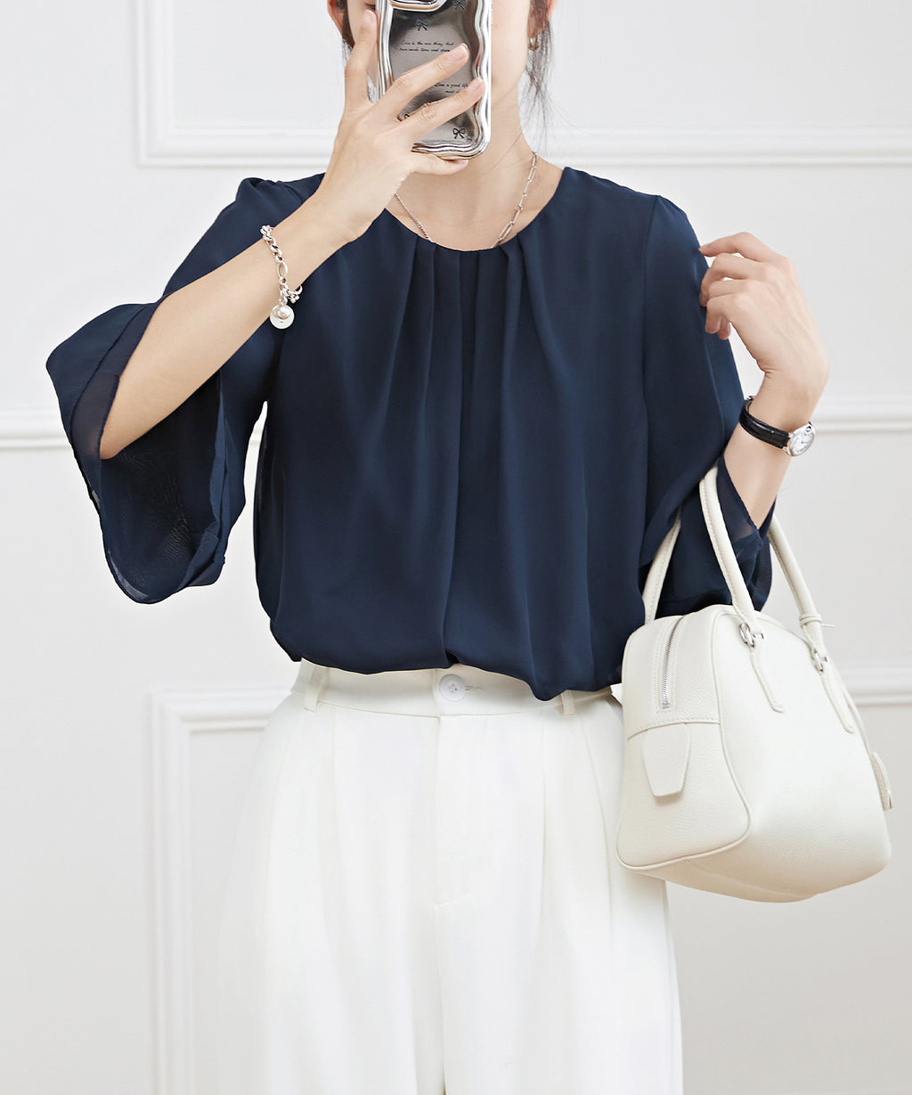 オフィスやセレモニー、デートなど、女性らしく品のある装いに合わせたい、オンコーデトップスです。