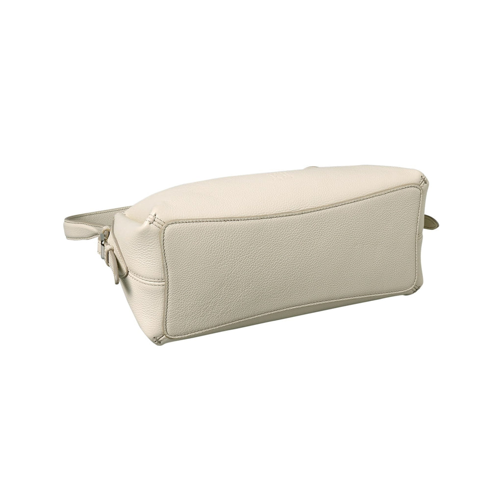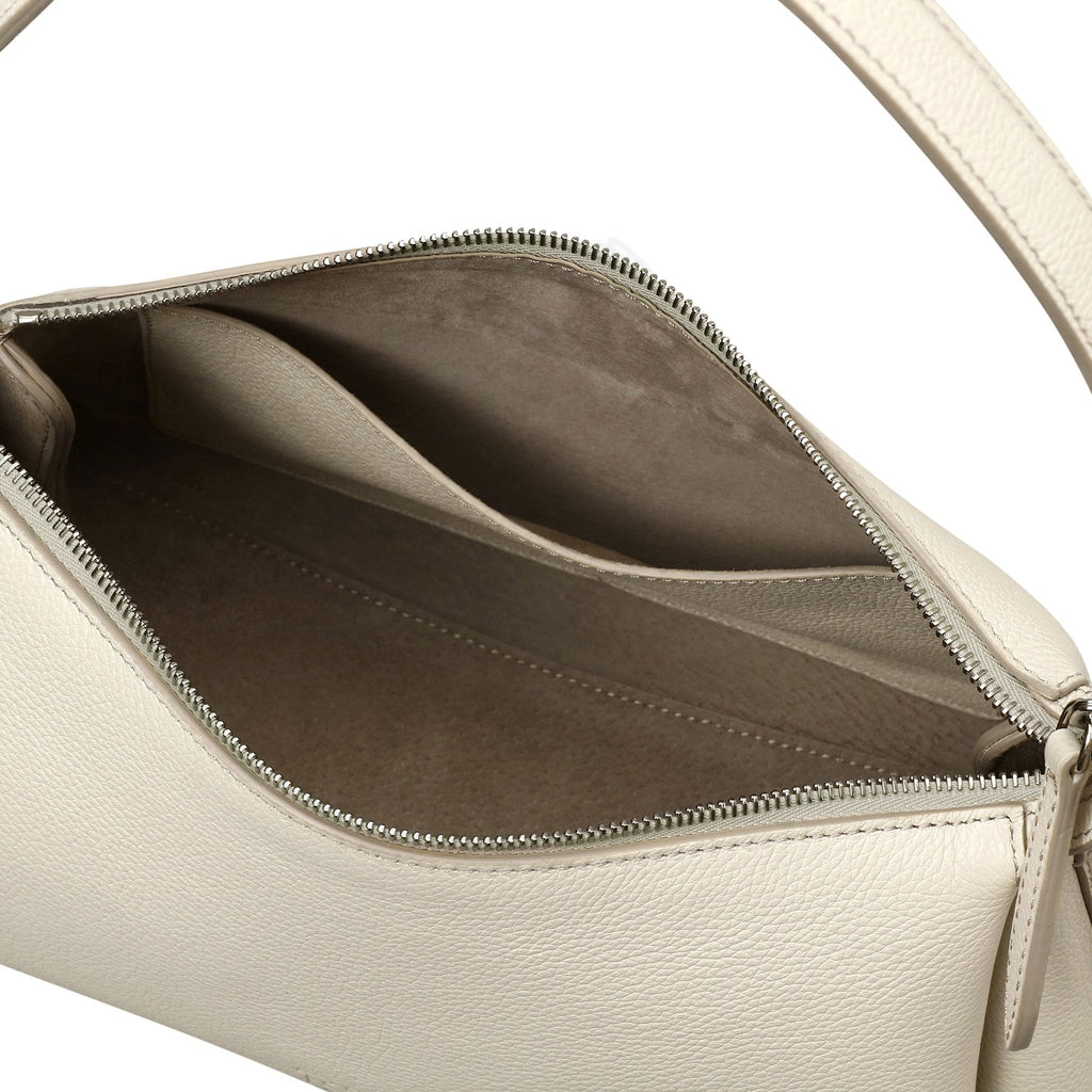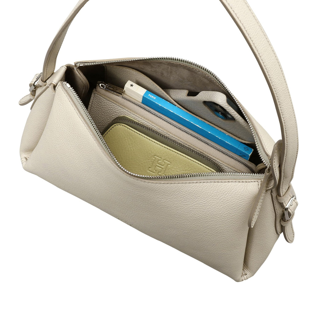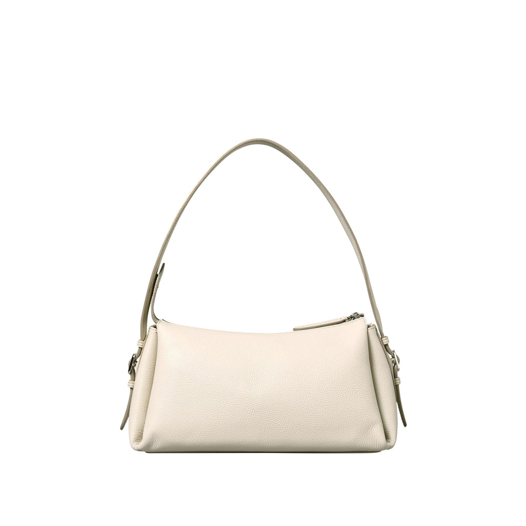 高さを抑えたユニークな横長のフォルムと、2枚のレザーを複雑に折り合わせることで生まれたふっくらとしたボディ。