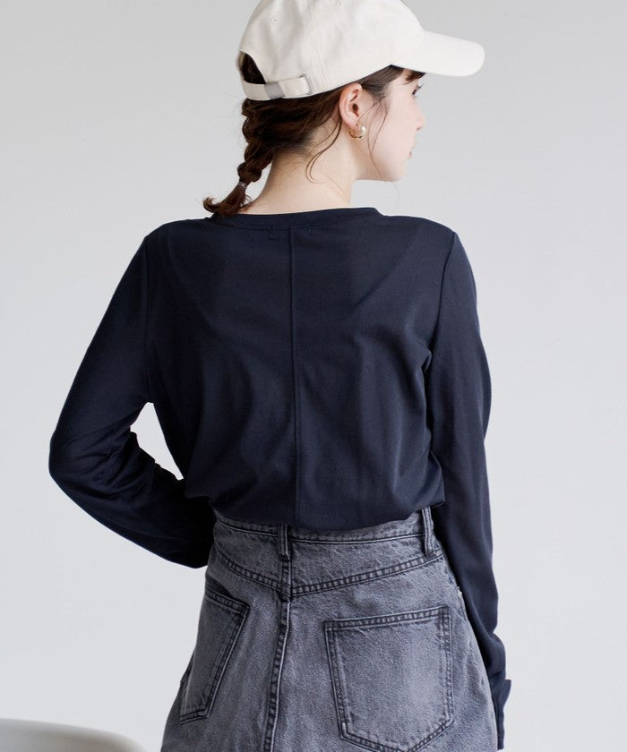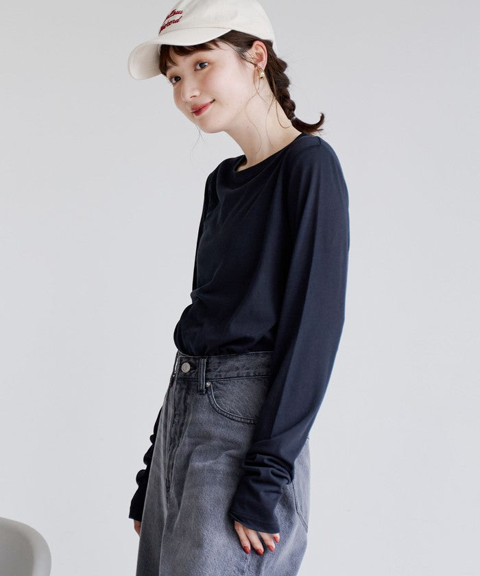 程よいサイズ感で着回しやすい、綿ナイロン素材のベーシックなロングスリーブTシャツ。