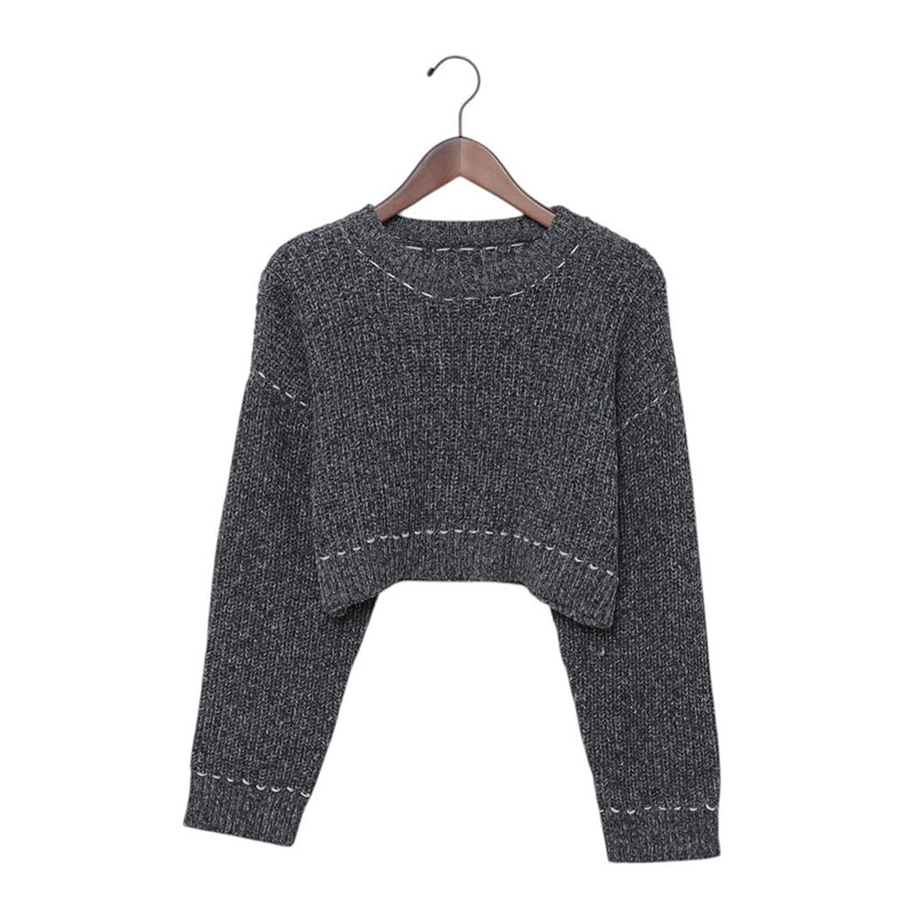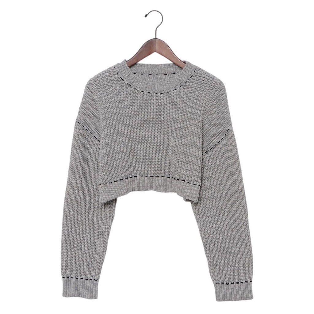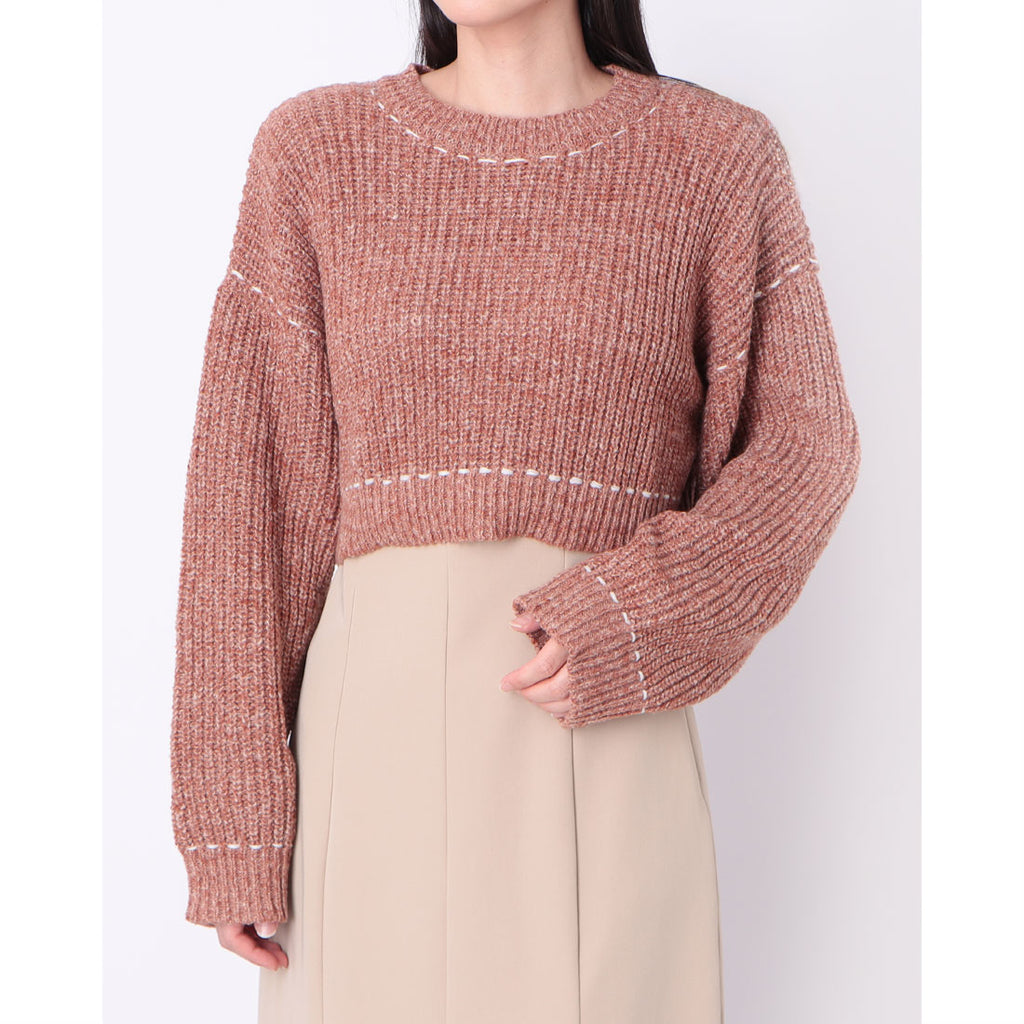 アルシーヴ archives 配色ステッチメランジショートニット