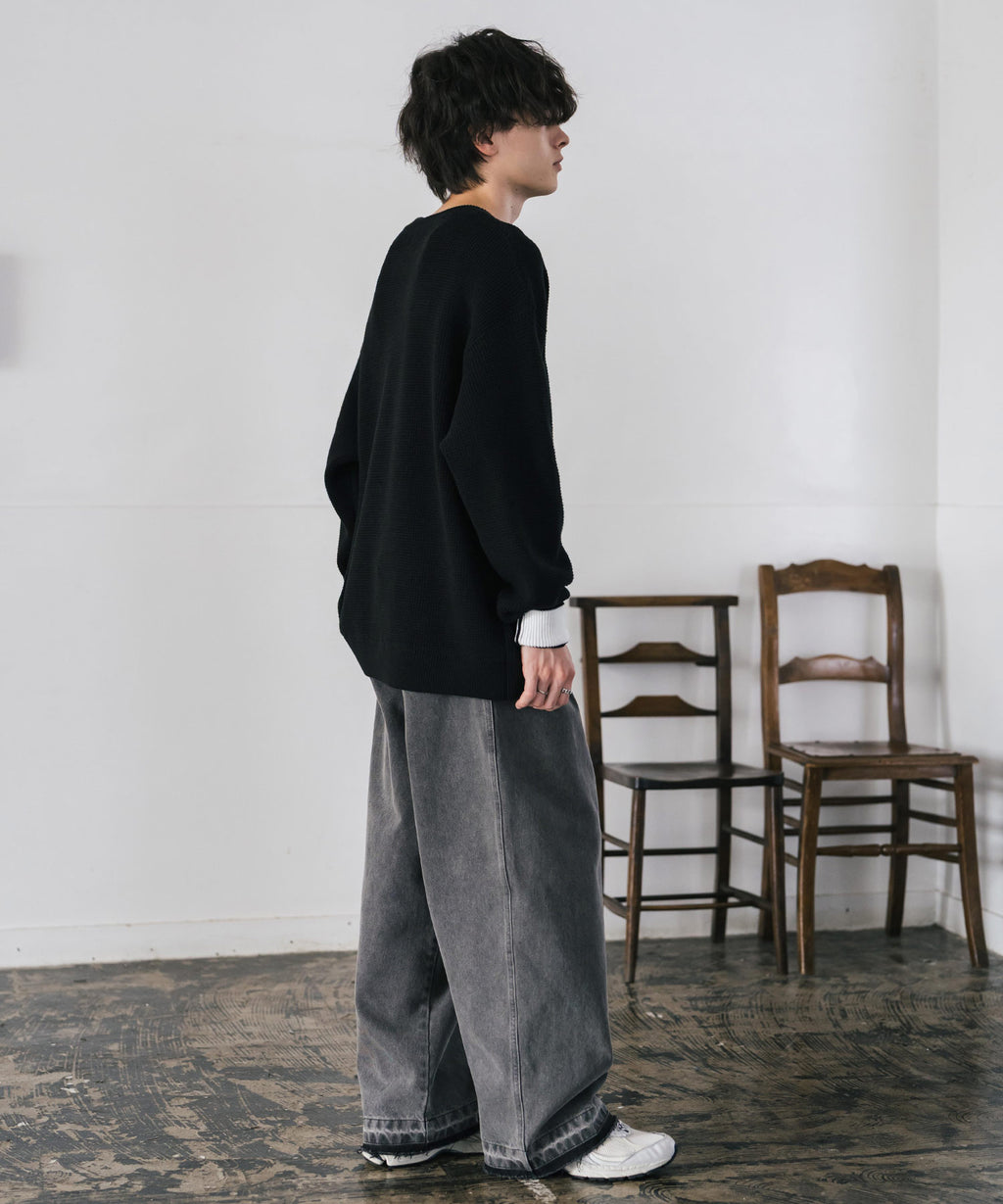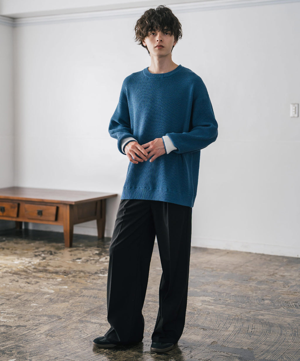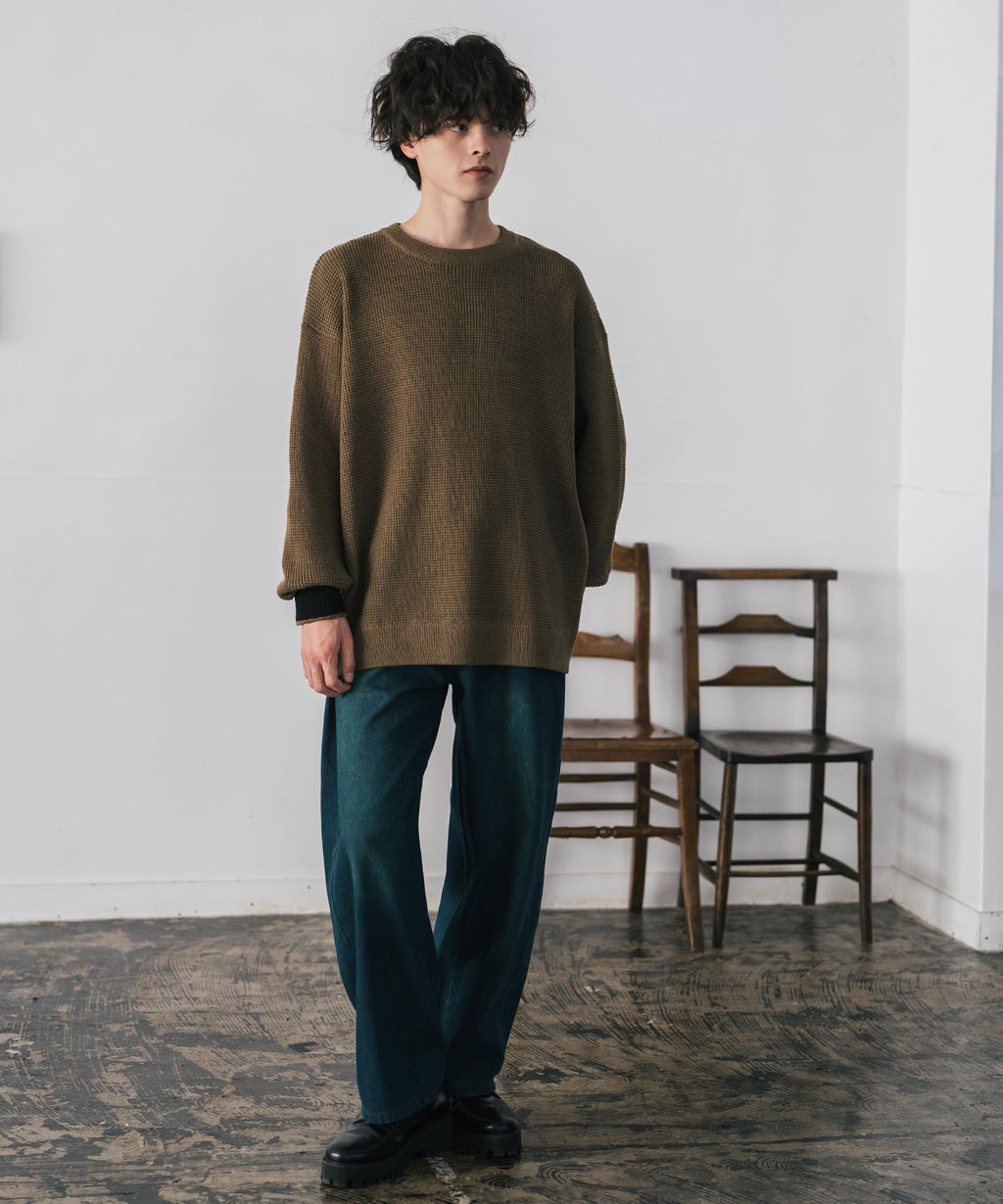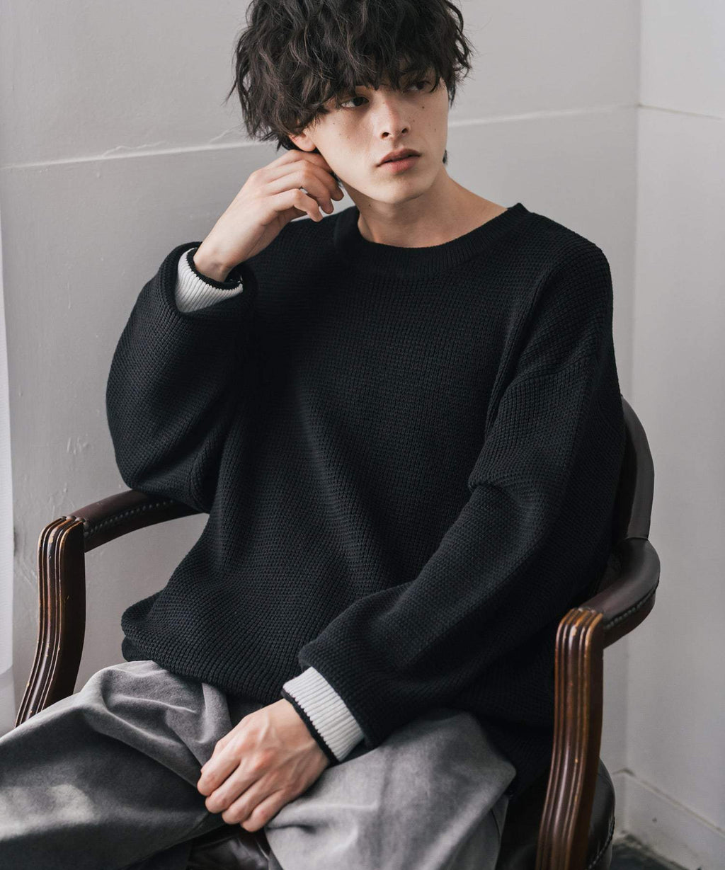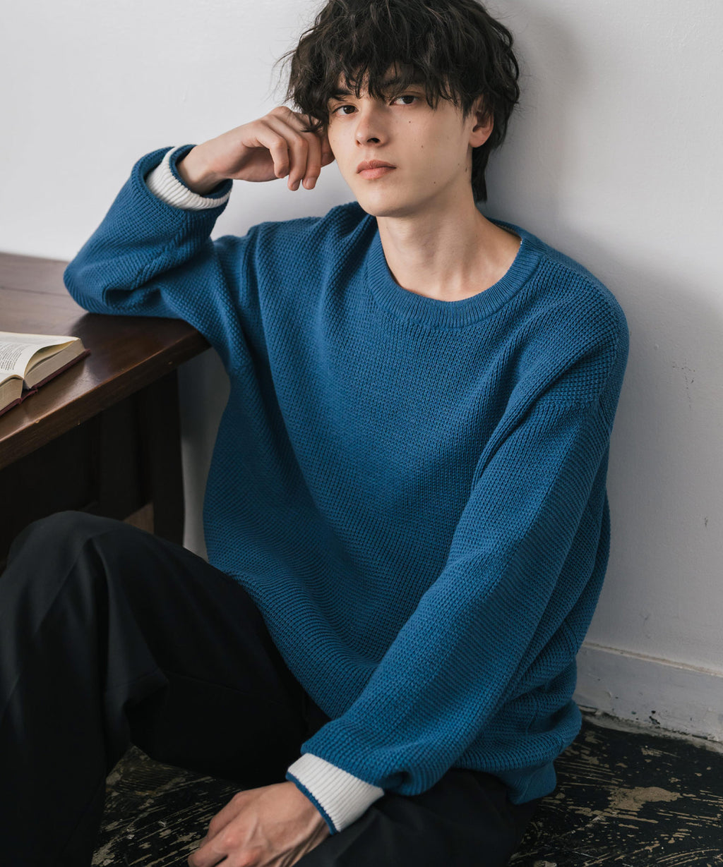 オーバーサイズ配色リブワッフルニットプルオーバー