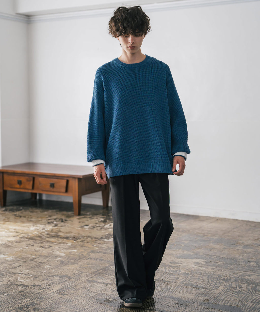シンプルながらも表情豊かなワッフル編みで仕上げたプルオーバーニット。