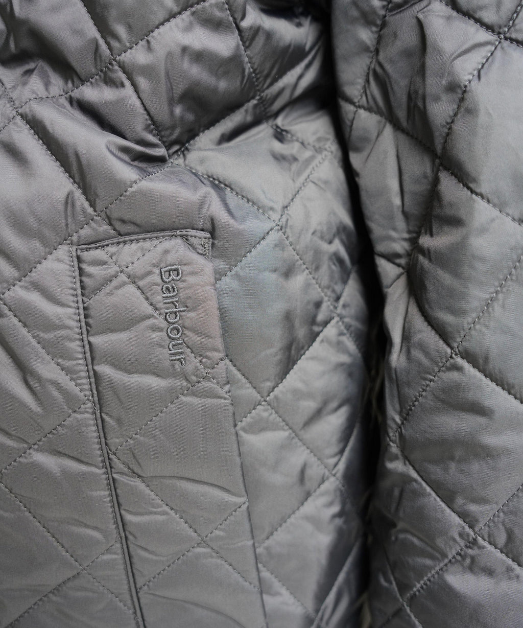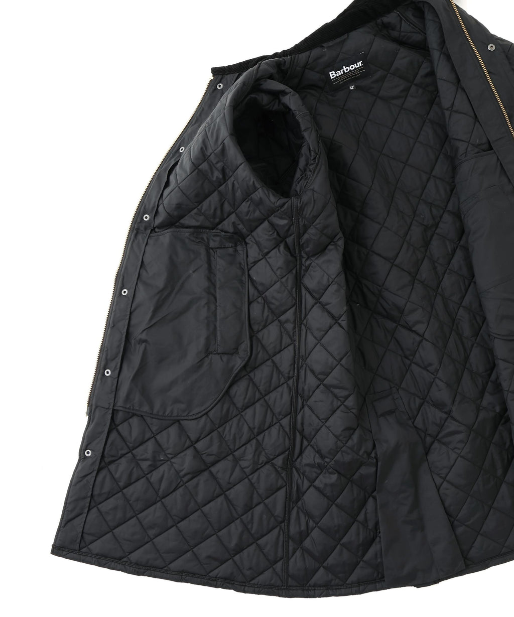 ブランドを象徴するダイヤモンドキルティング生地を使用し、シグネチャーのコーデュロイ襟、ハンドウォーマーポケット、スナップボタン付きのバックベントなど、機能性にも優れた一着です。
