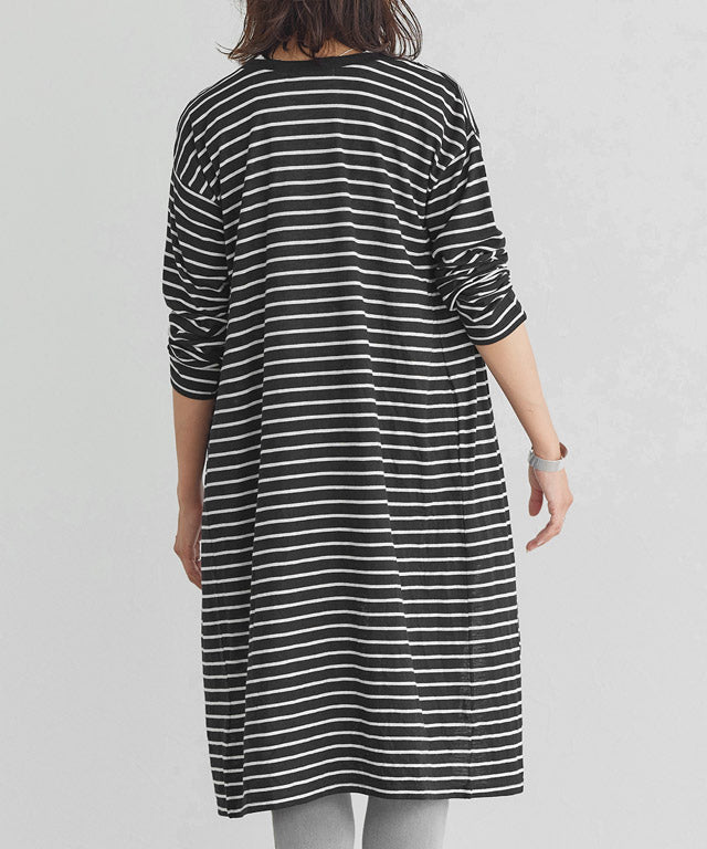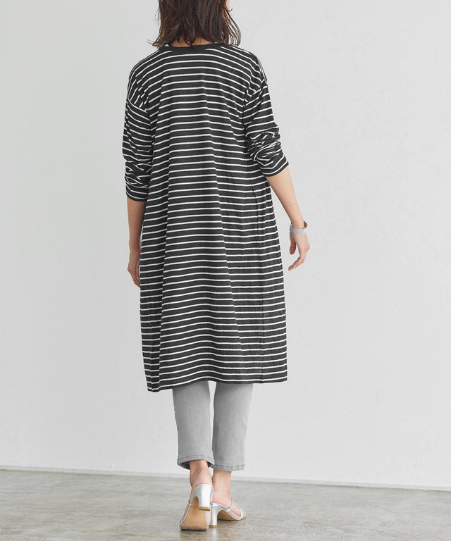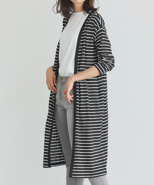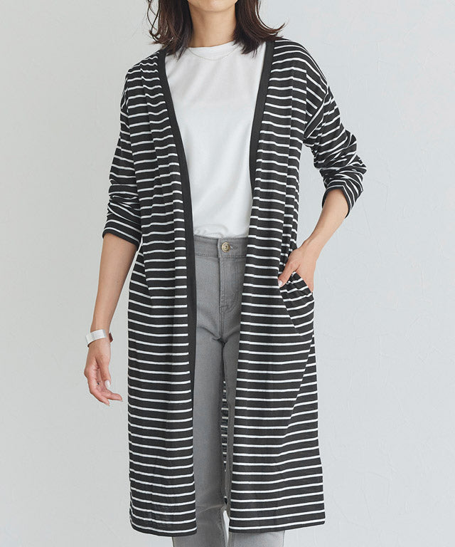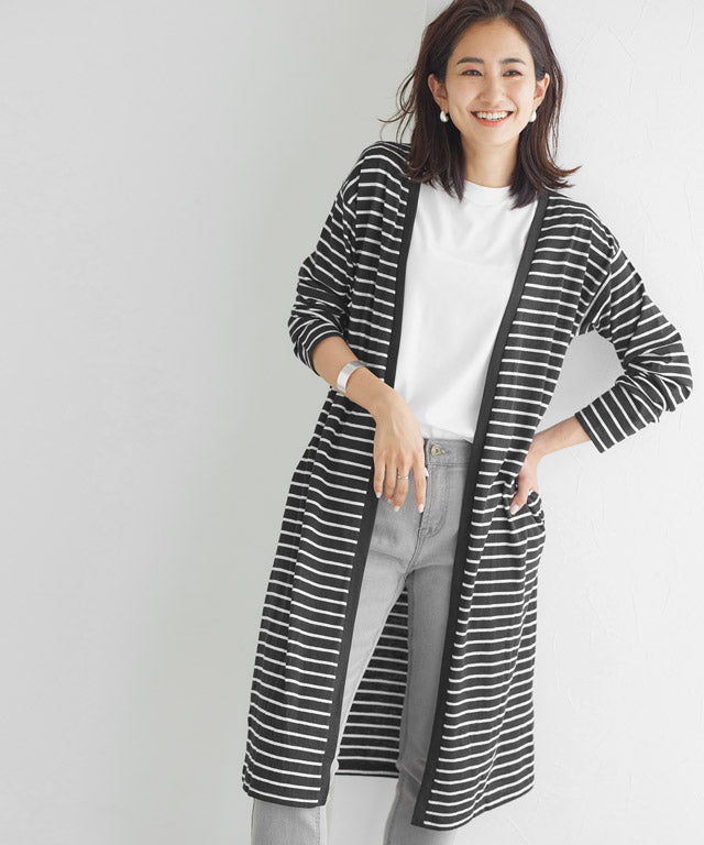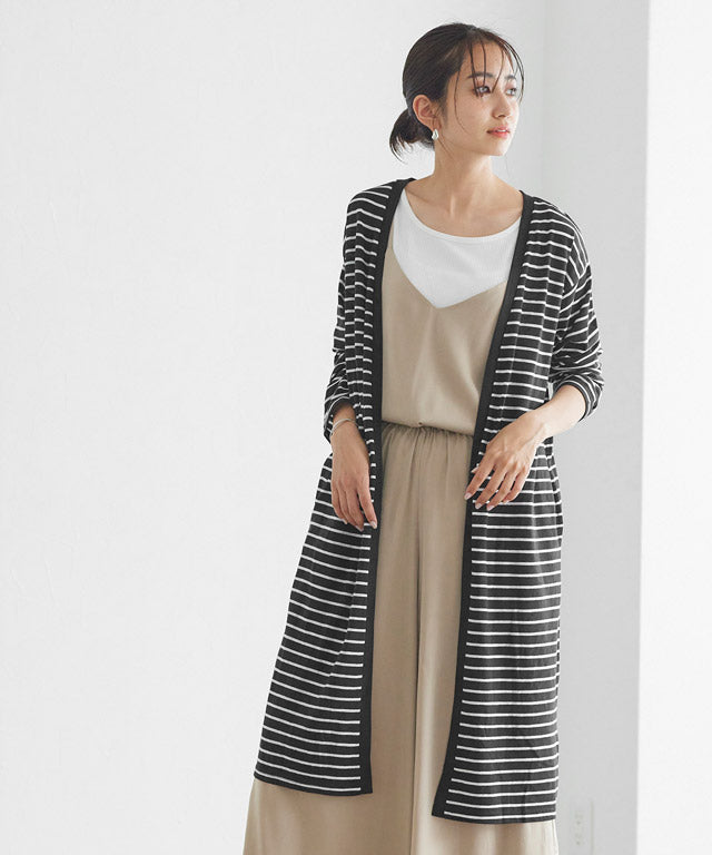太さが異なるスラブ糸を使用し、表情豊かに仕上げたロングカーデは綿混素材を使用しているので、さらっと肌触りが良く快適な着心地◎
