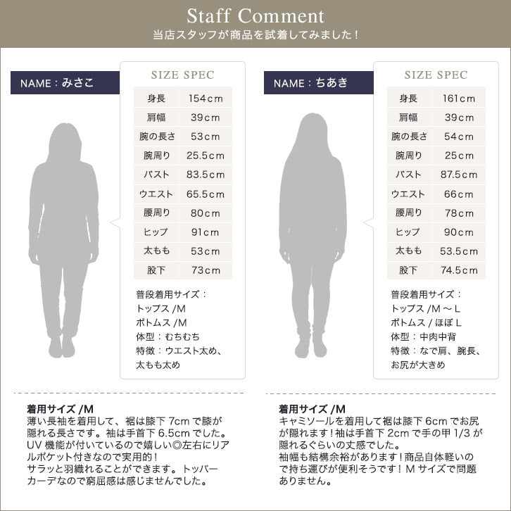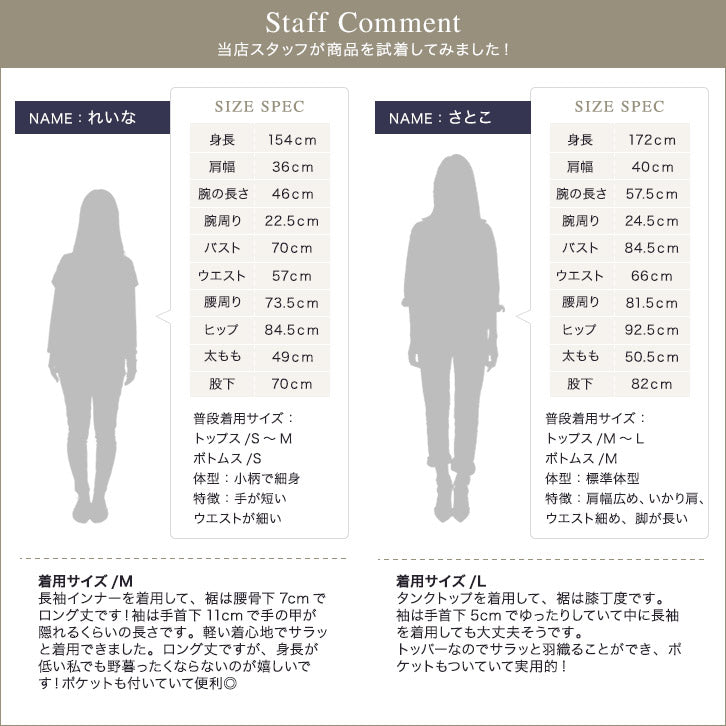 お尻がすっぽり隠れるロング丈は、気になる体型カバーもしてくれるうえに、縦長効果でスッキリと見えるのも嬉しいポイントです!