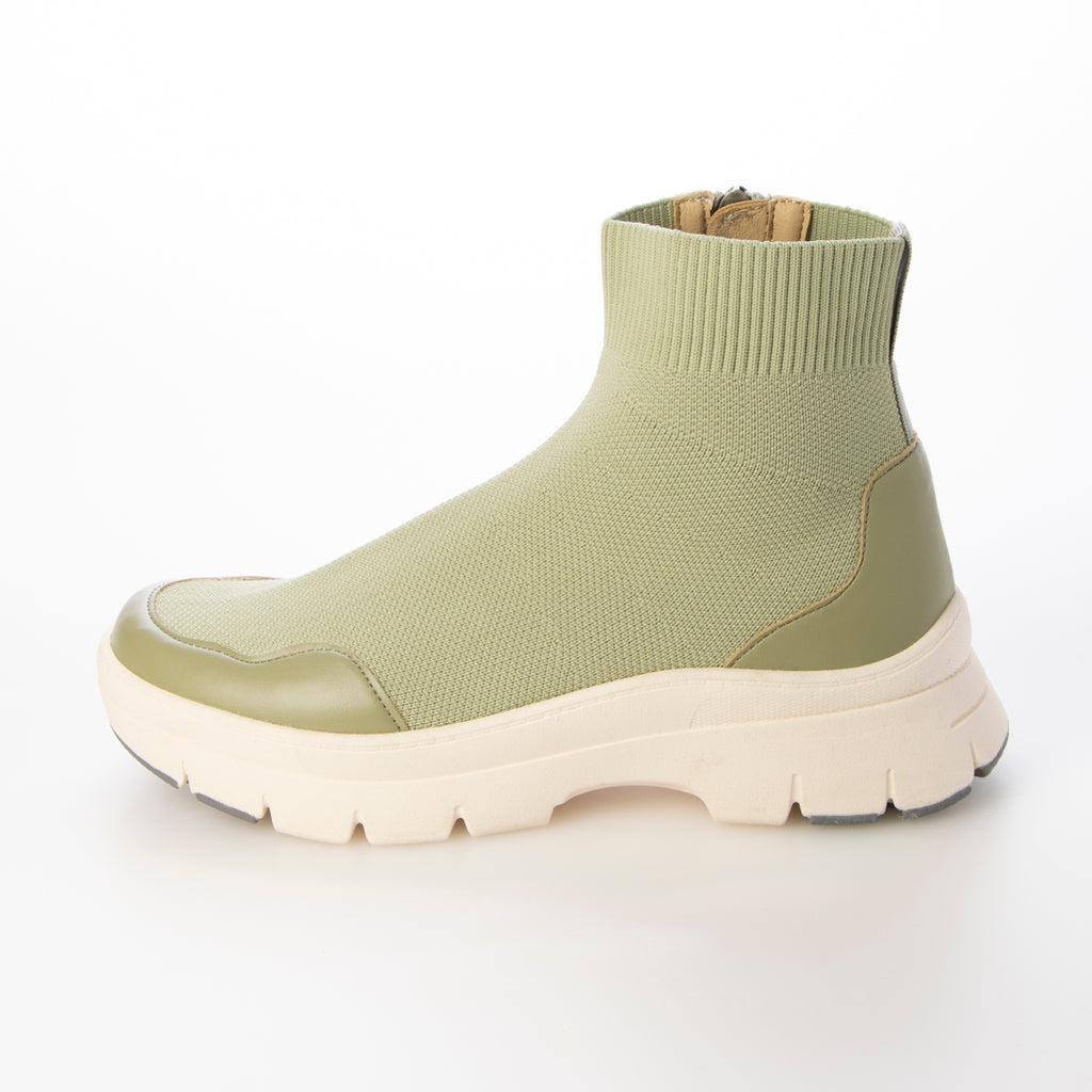 伸縮性のあるニット素材を使用した、シンプルな春ニットブーツ。