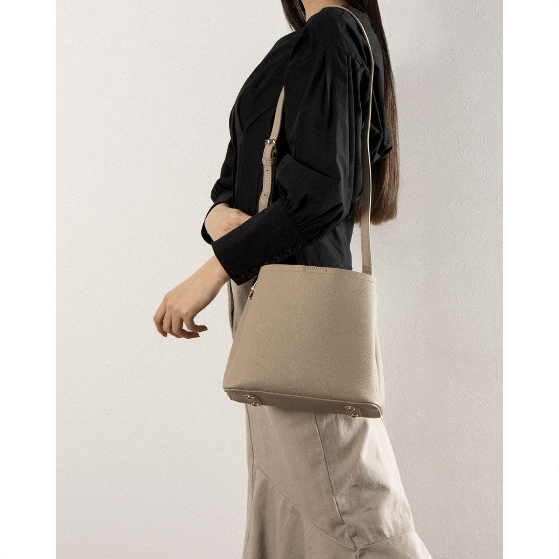 ・大人フェミニンで合わせやすいグレージュ
