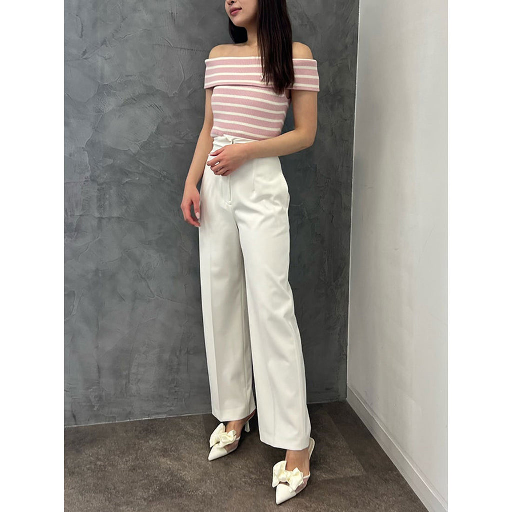 ストレッチニットを使用した着心地の良いオフショルダーニット。