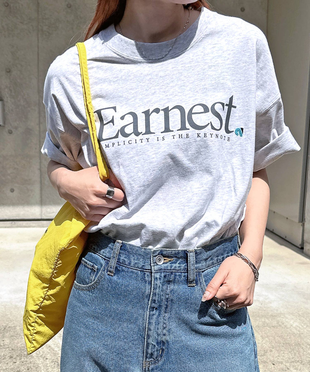アンドミー andme Earnest ロゴプリント 半袖 Tシャツ