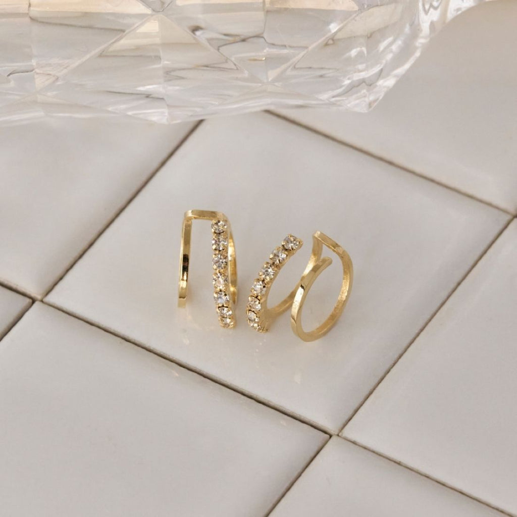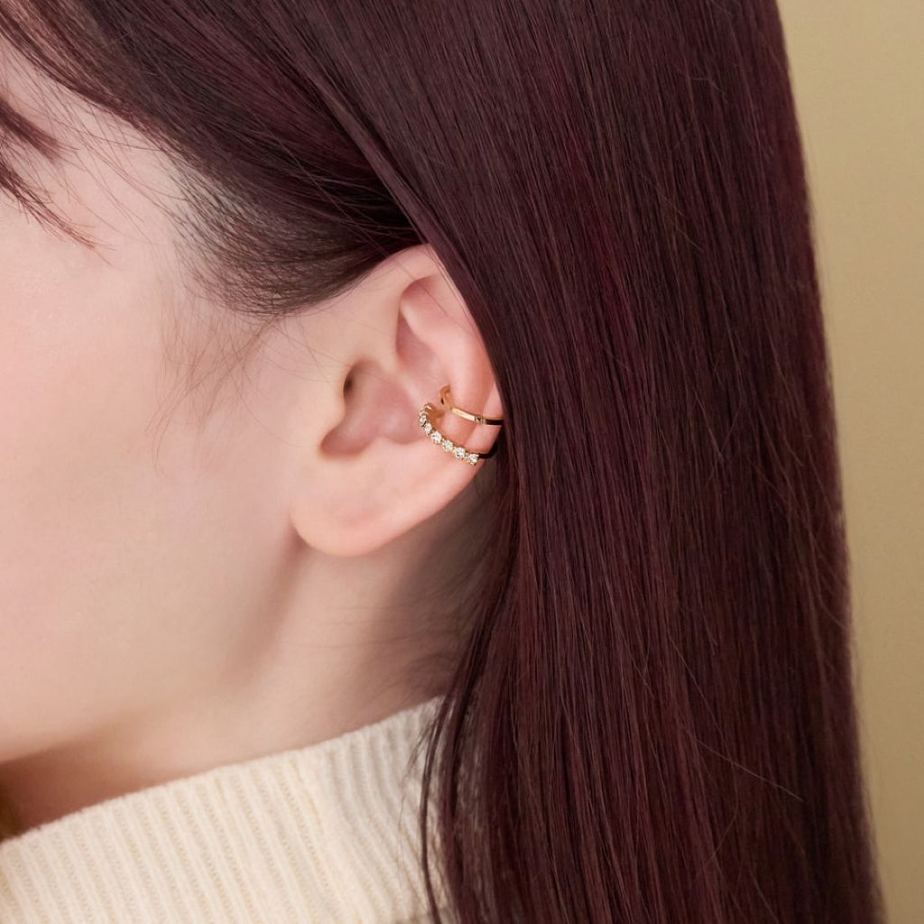 ラインに沿ったビジューの輝きが耳元に女性らしさを与えてくれます。