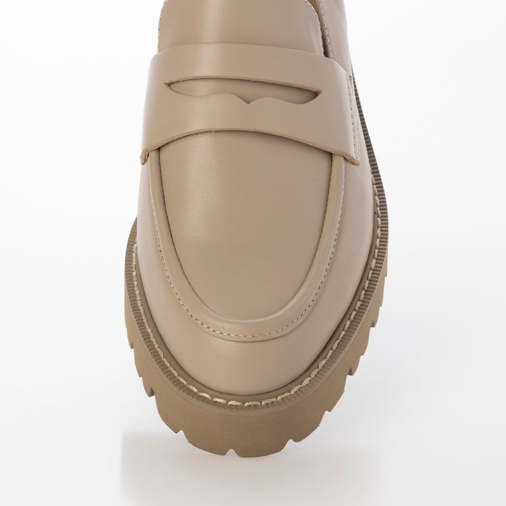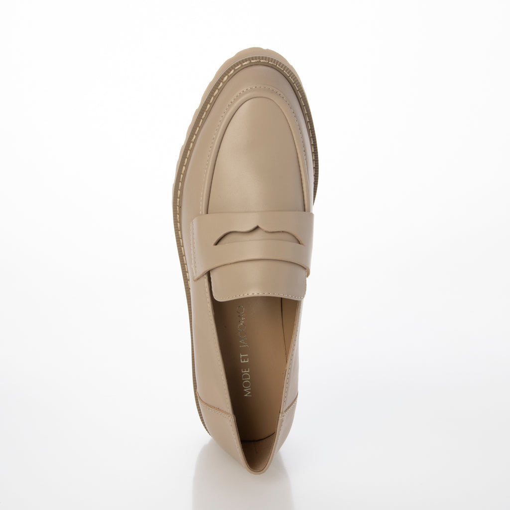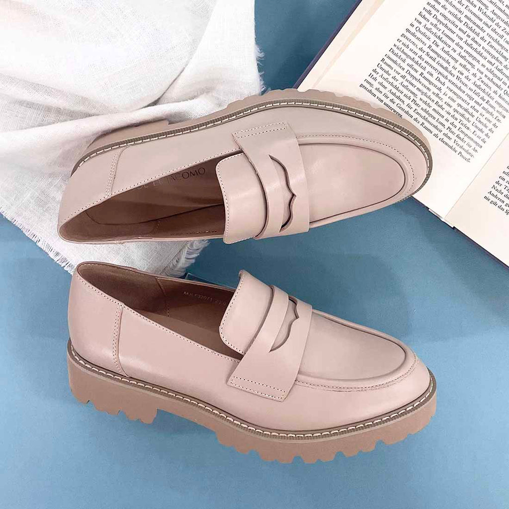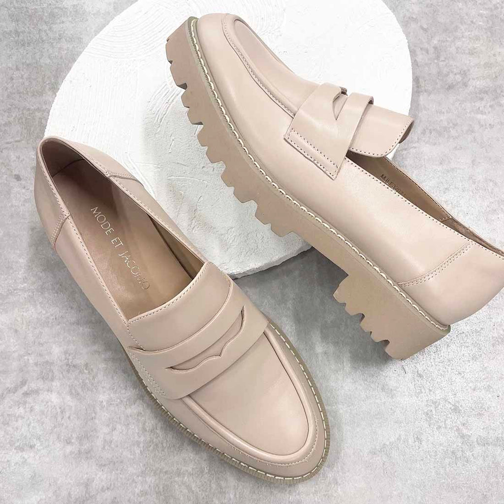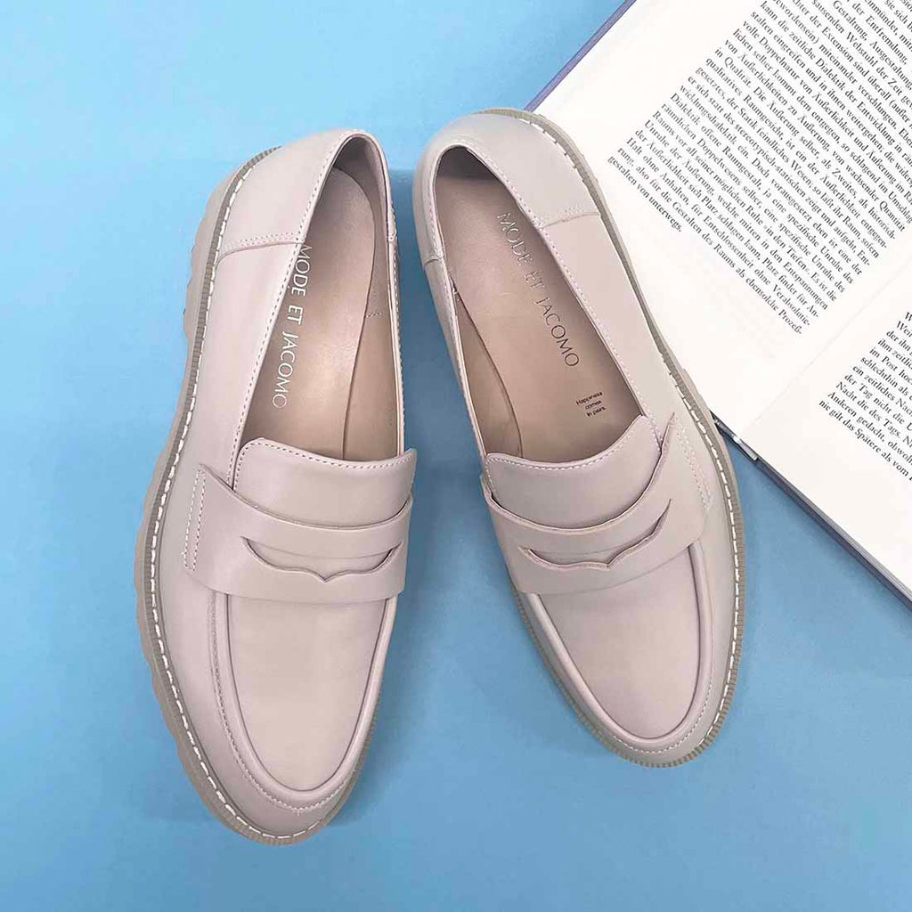 定番のコインローファーを、トレンドの厚底で今年らしいシルエットにアップデート。