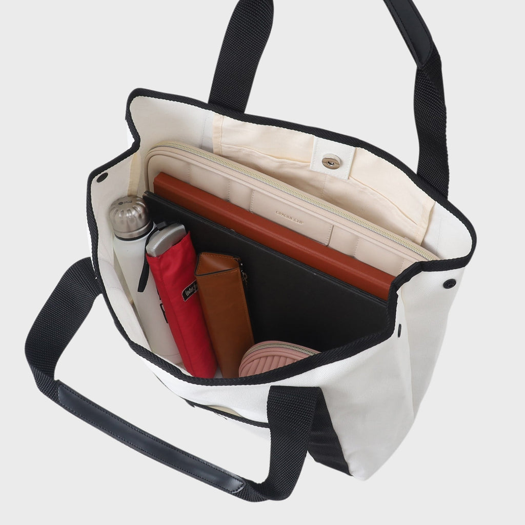 便利な内ポケットもありA4サイズファイル類も楽々収納できる仕事に便利な大容量バッグ。
