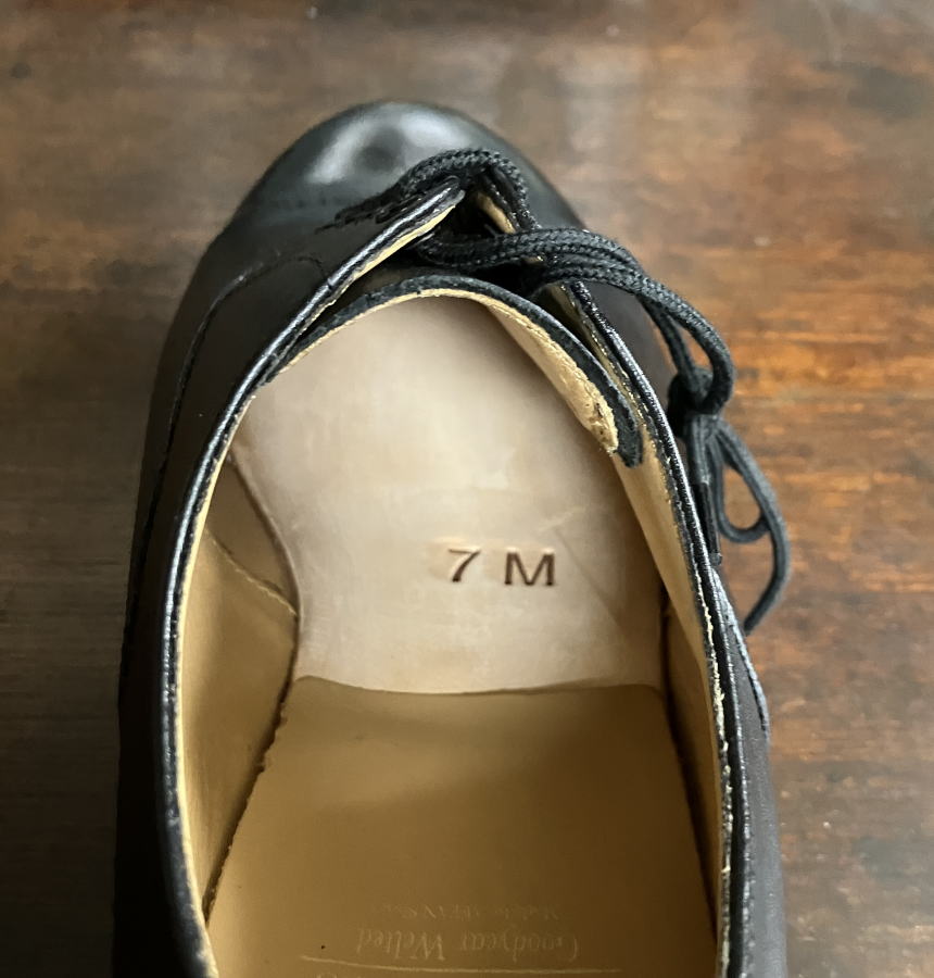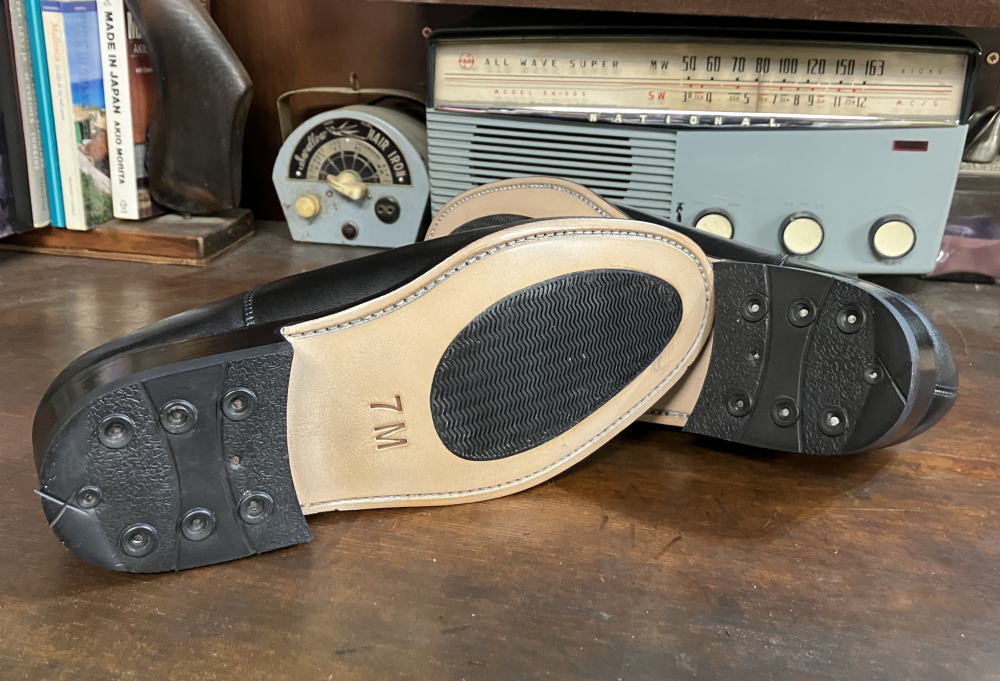 今回出品しておりますこの靴は、欧州某国向けに生産されたものですが、仕様違いのため納品できず工場の倉庫に眠っていたアッパーを再利用→日本向けにリニューアルした靴です。