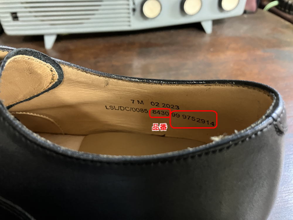 ライニングの【品番】は、市販の靴と違って1足1足品番(番号)が異なります。