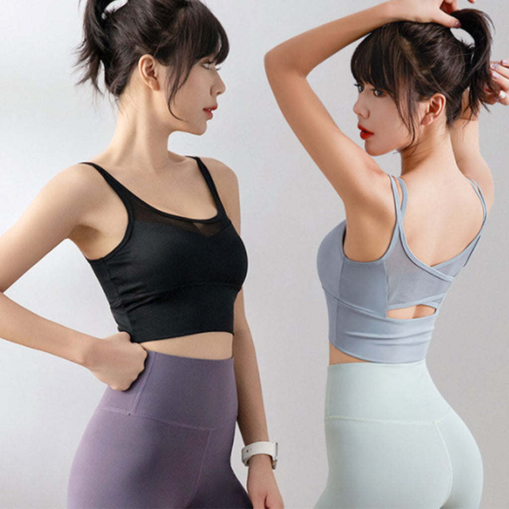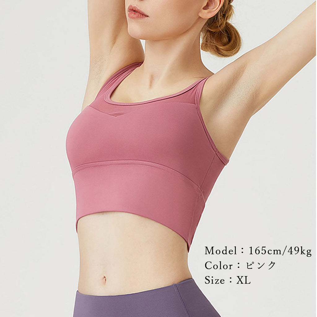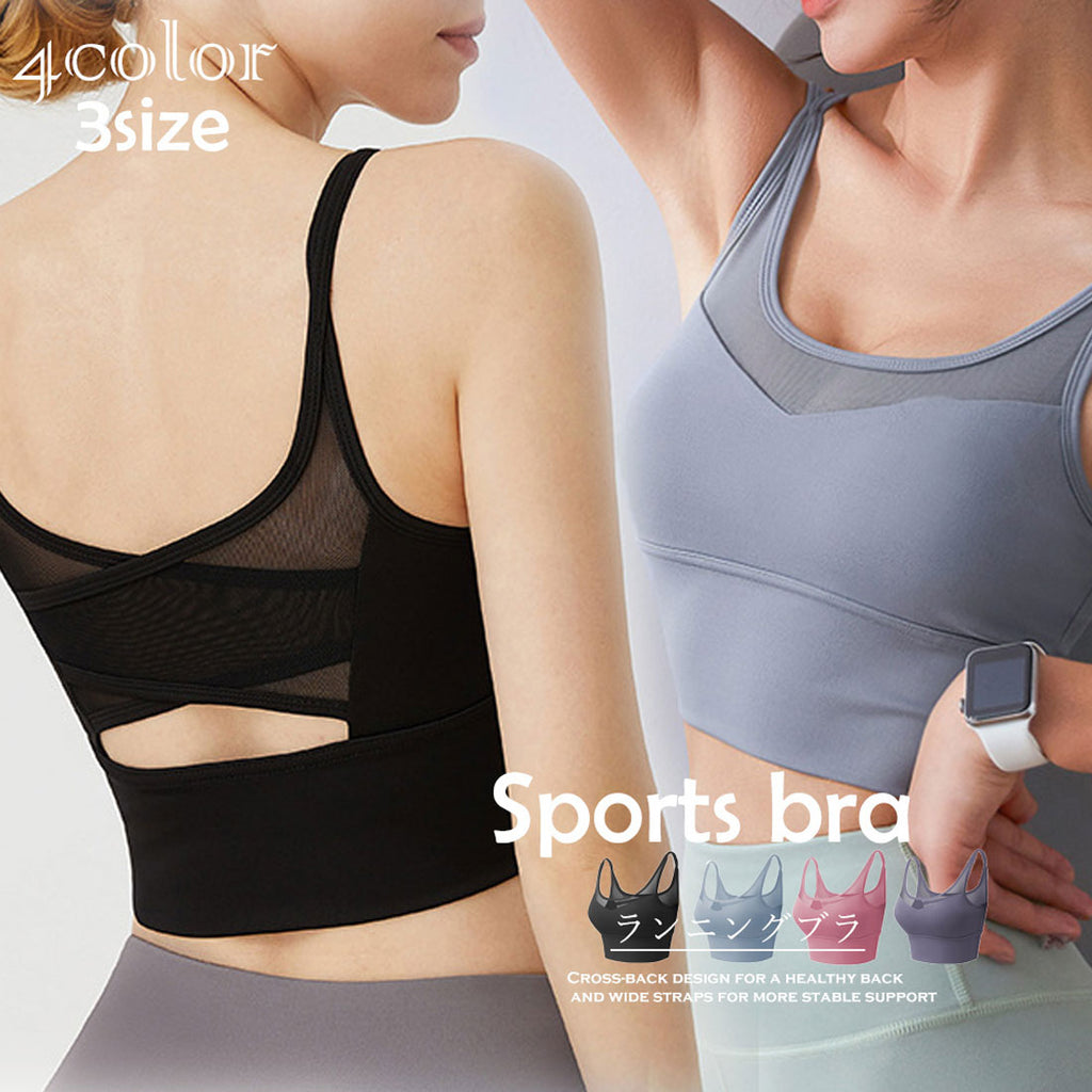 揺れない クロスバック ヨガウエア カップ付き ジムウェア メッシュ切り替え フィットネスブラ ランニング ウェア ブラトップ 美背 ストレッチスポブラ