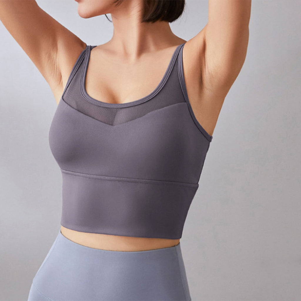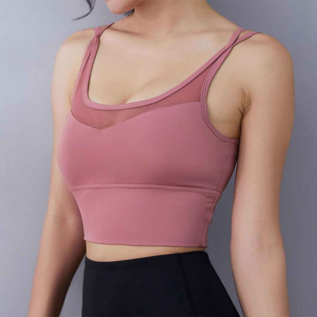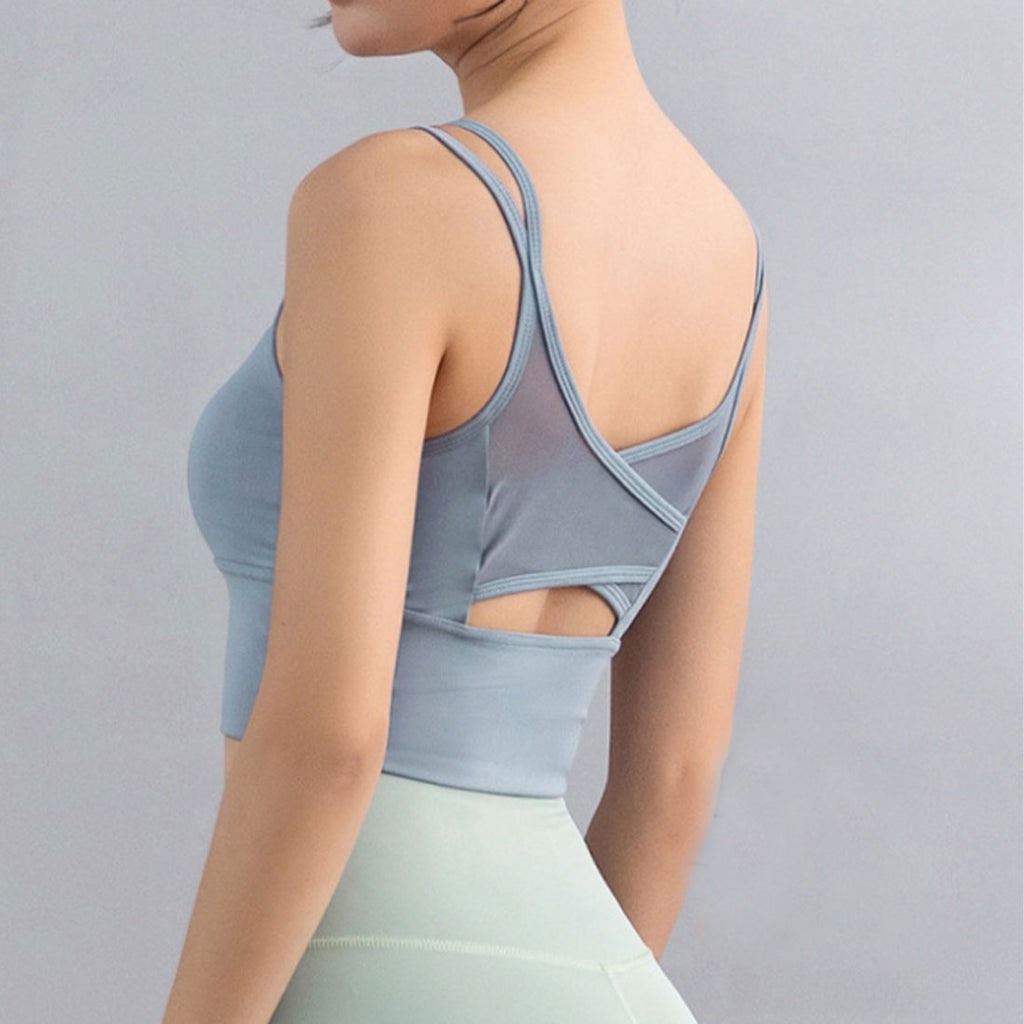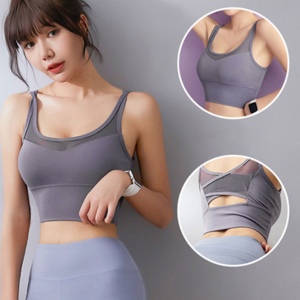揺れない クロスバック ヨガウエア カップ付き ジムウェア メッシュ切り替え フィットネスブラ ランニング ウェア ブラトップ 美背 ストレッチスポブラ