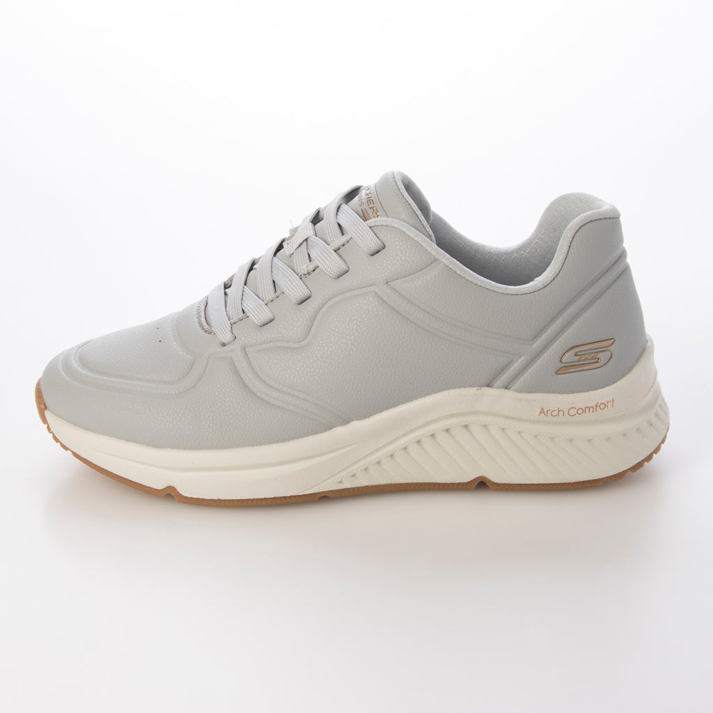 このレースアップは、合成素材のアッパーに、クッション性のあるSkechers Memory Foam(TM)(スケッチャーズ メモリーフォーム)インソールとサポート力をアップするArch Comfort(TM)(アーチ コンフォート)が特長です。