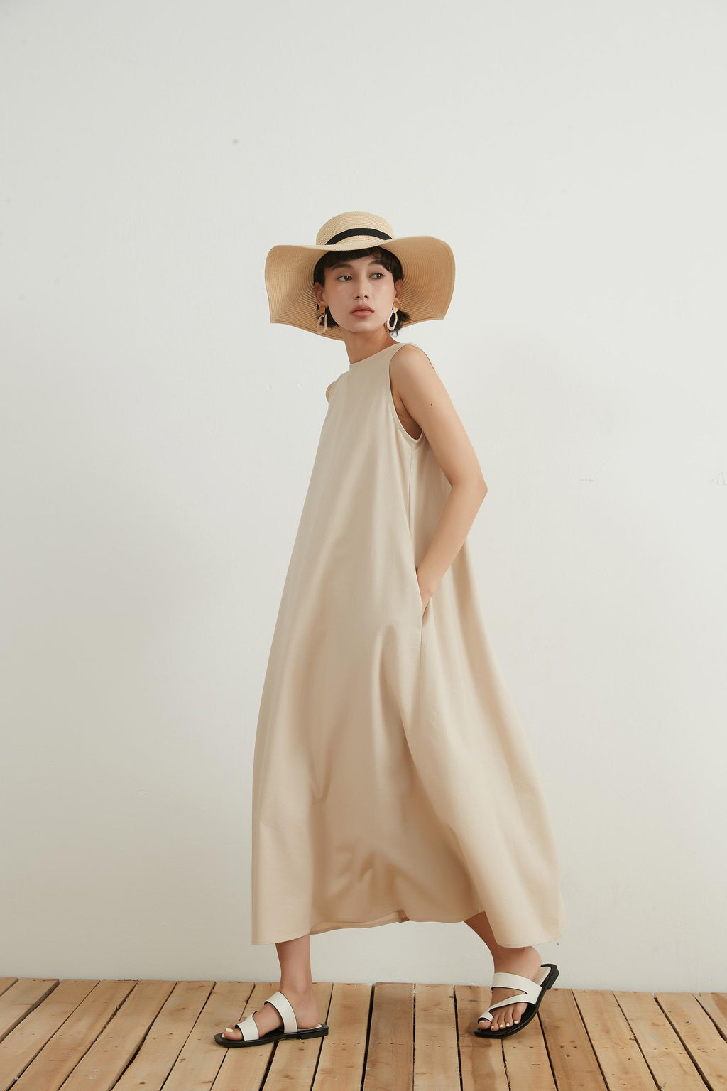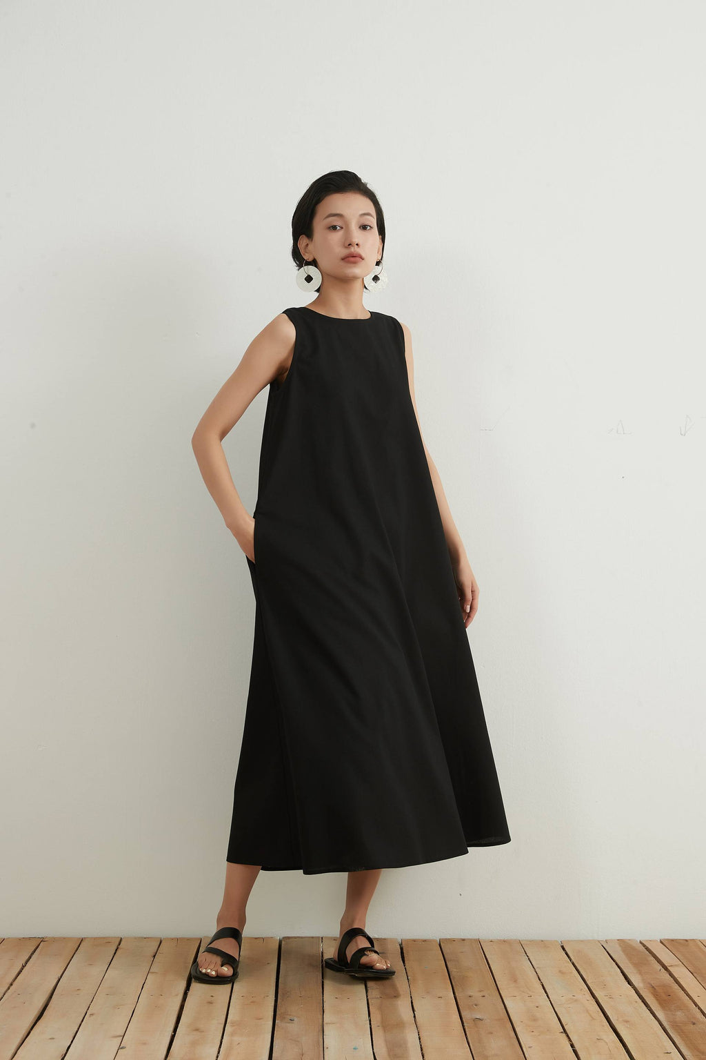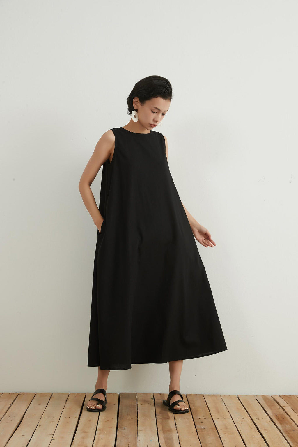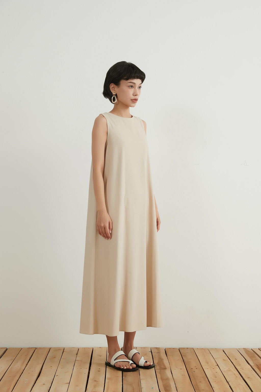 程よい厚さのリネンコットンミックスの生地で、体のラインを拾いにくく安心してパッと被れるAラインワンピース。