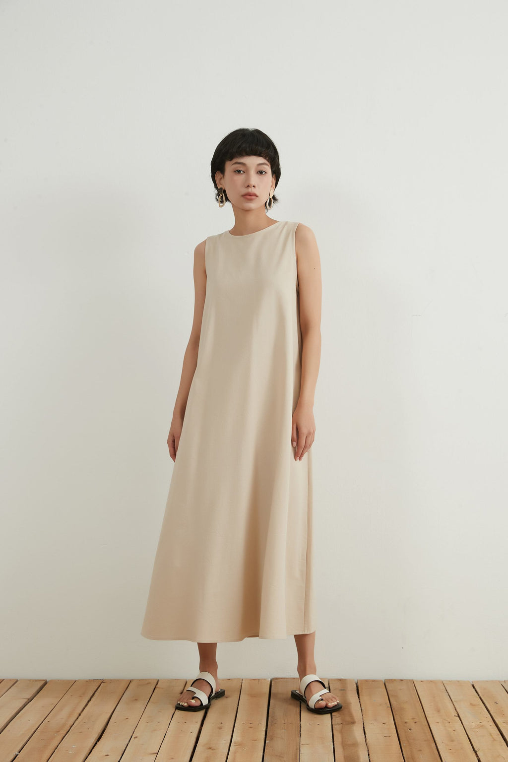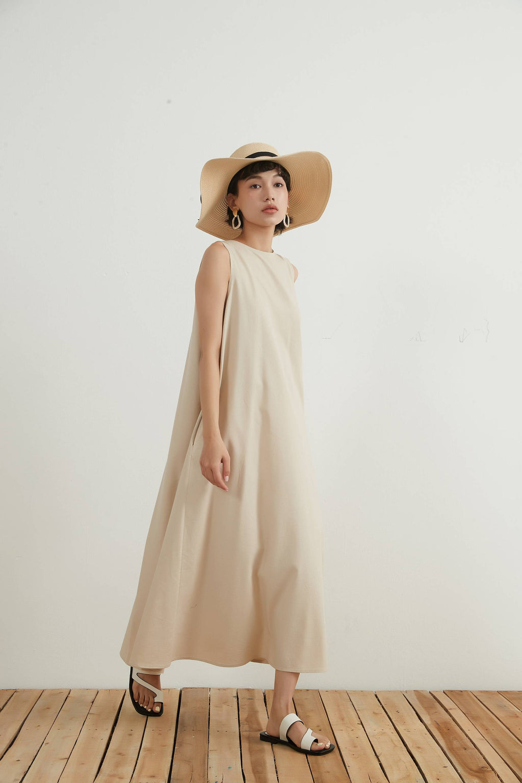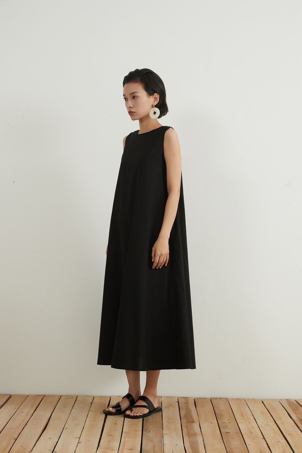 程よい厚さのリネンコットンミックスの生地で、体のラインを拾いにくく安心してパッと被れるAラインワンピース。