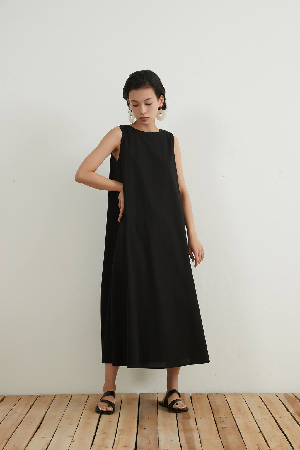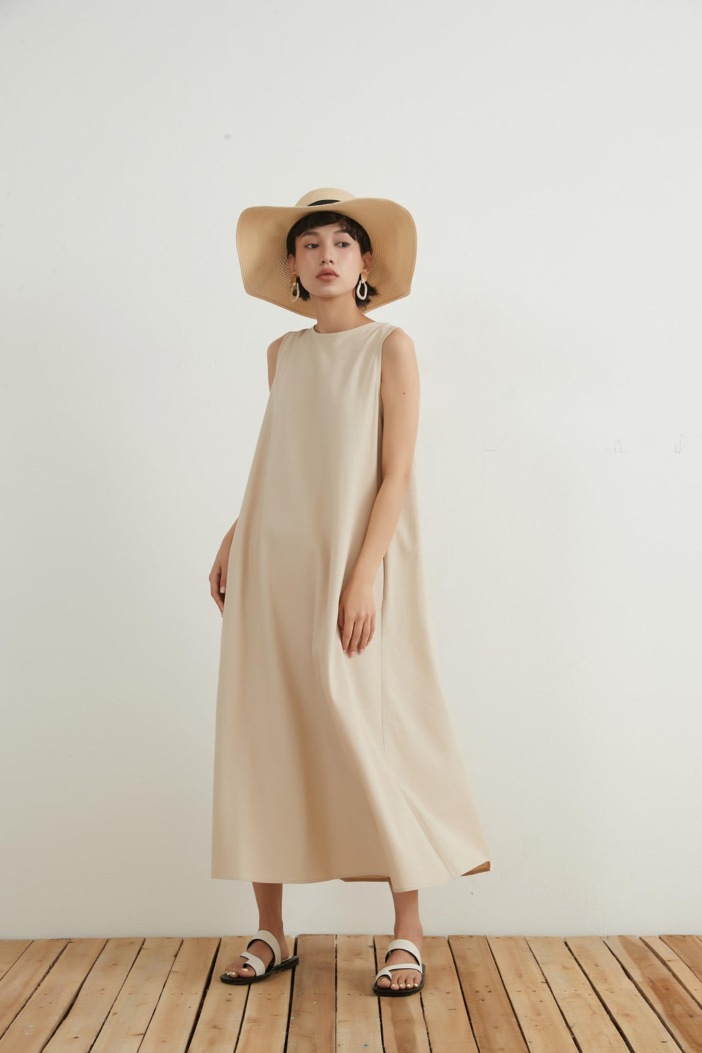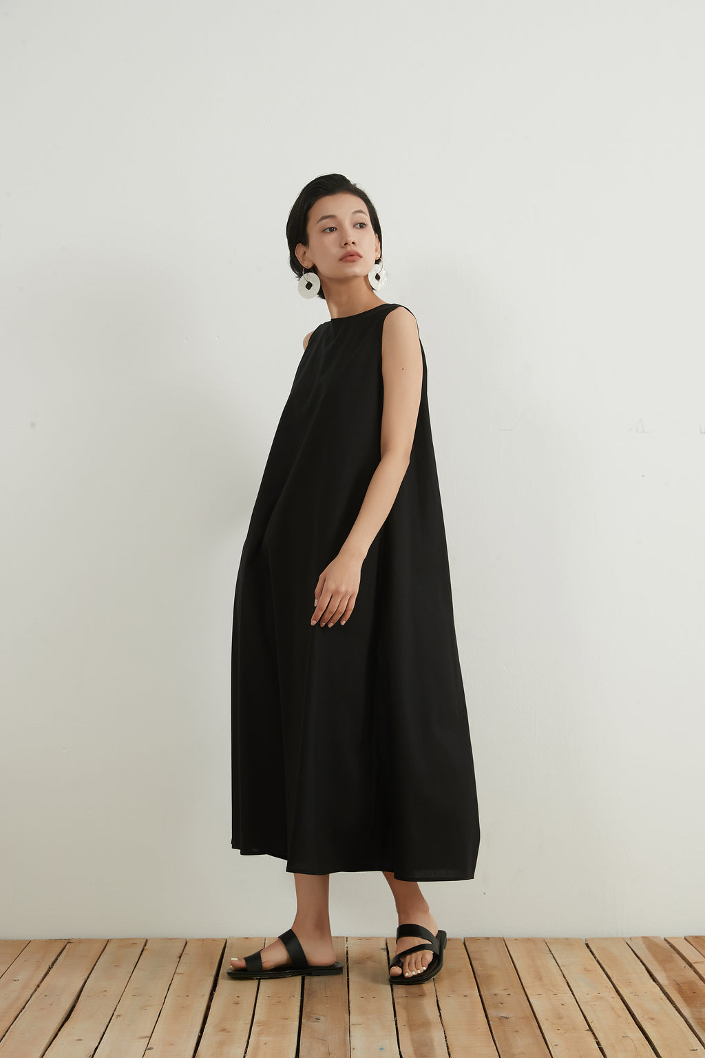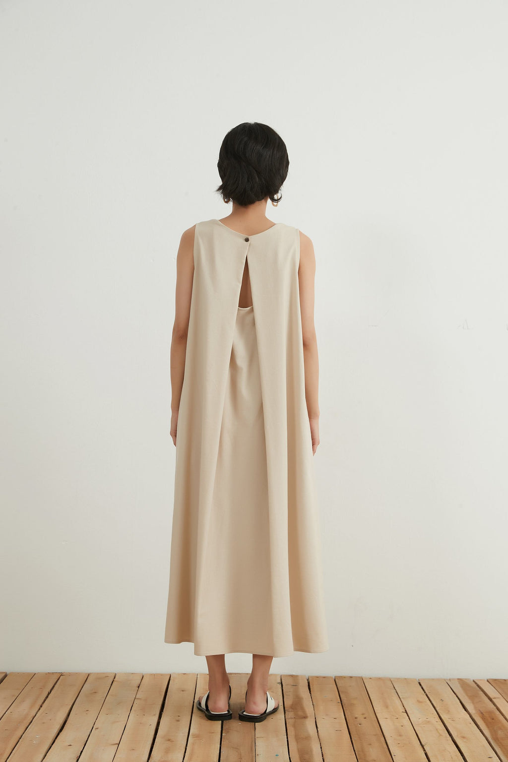 程よい厚さのリネンコットンミックスの生地で、体のラインを拾いにくく安心してパッと被れるAラインワンピース。