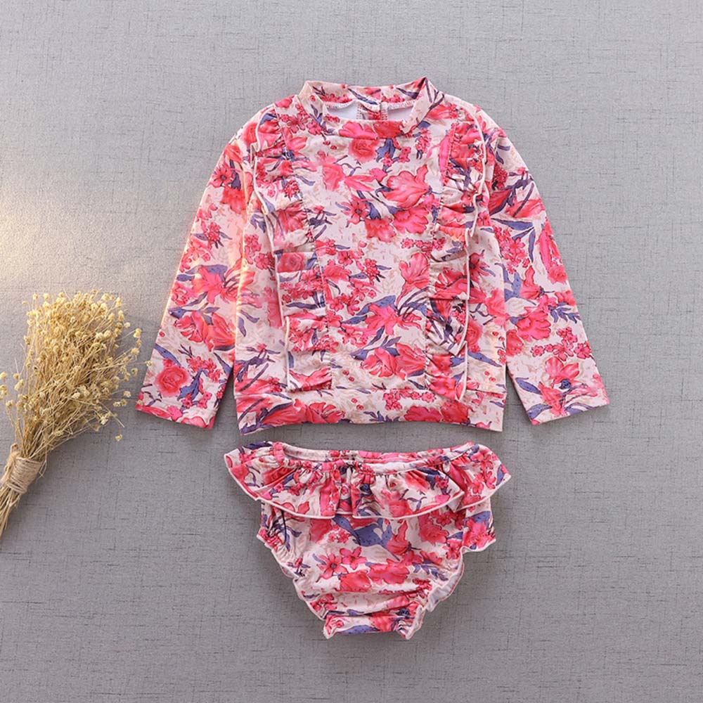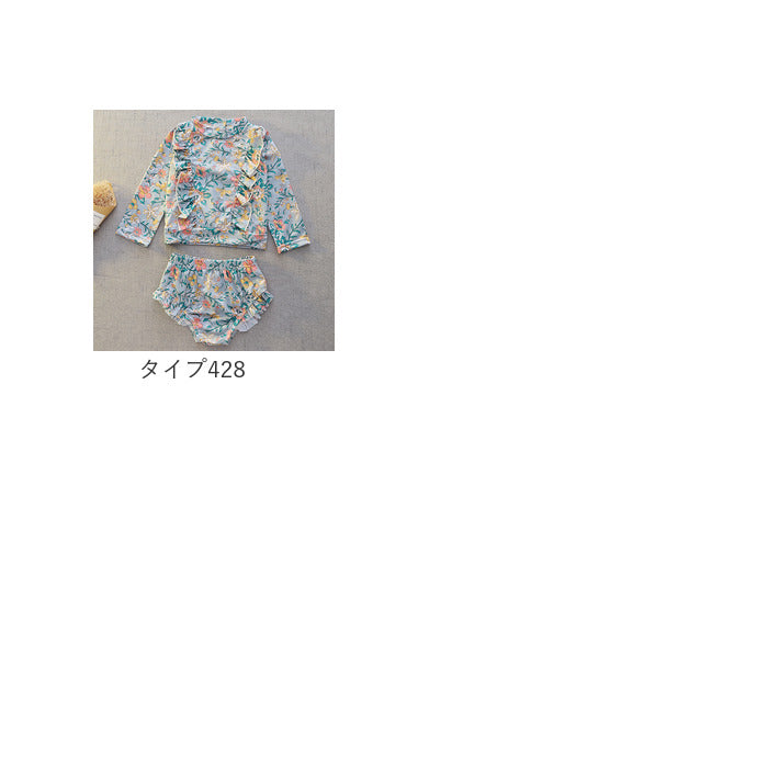 ノーブランド NO BRAND キッズ 水着 女の子 セパレートスイムウェア キッズ水着 ラッシュガード みずぎ 子供水着 フリル 長袖 柄 こども 子供 子ども 上下 上下セット 水遊び ビーチ 海 通販ガールズ 女児 女子 水泳教室 プール かわいい 可愛い おしゃれ オシャレ