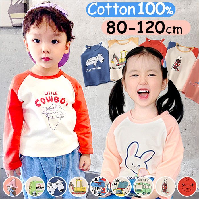 ノーブランド NO BRAND Tシャツ キッズ コットン 長袖ロングTシャツ tシャツ ロングtシャツ ロンT 長袖Tシャツ 子ども服 子供服 ロング 綿 プリント 子供 子ども こども 通販吸湿性 放湿性 肌触りが良い 男の子 女の子 男女兼用 かわいい 可愛い