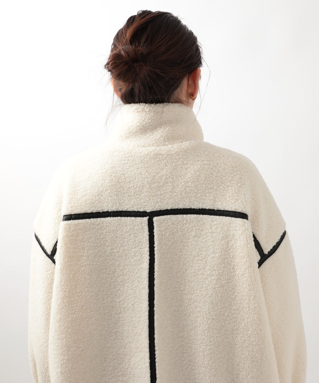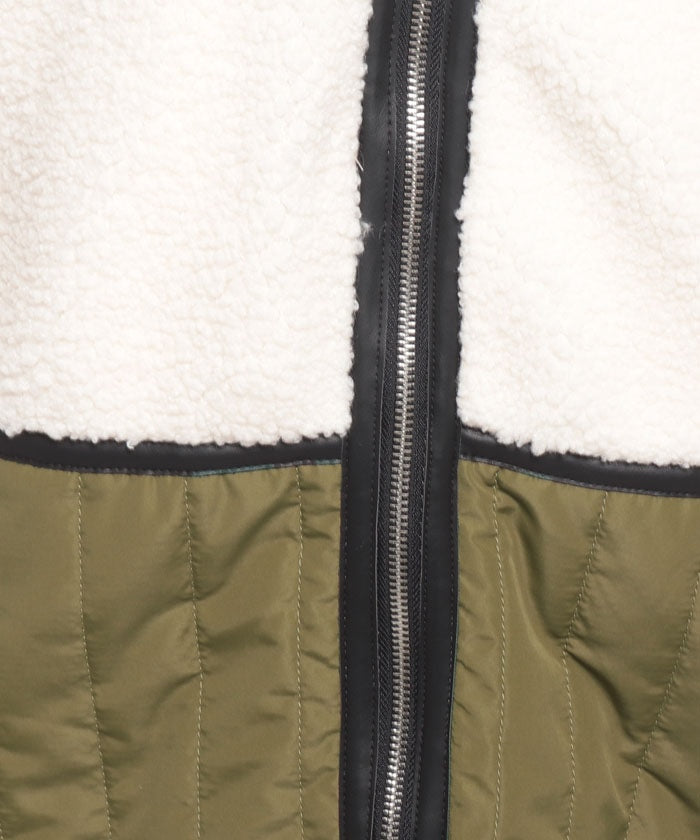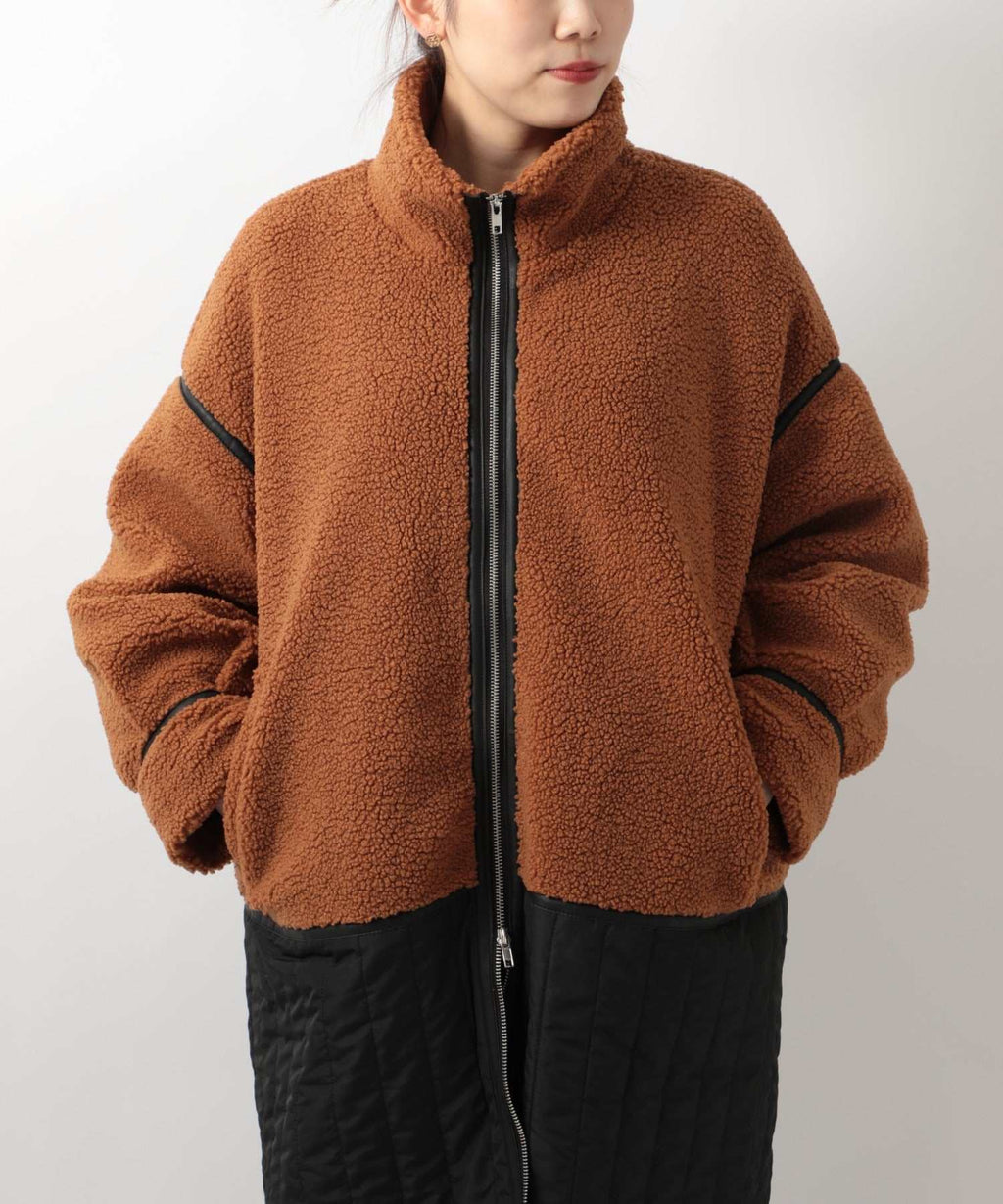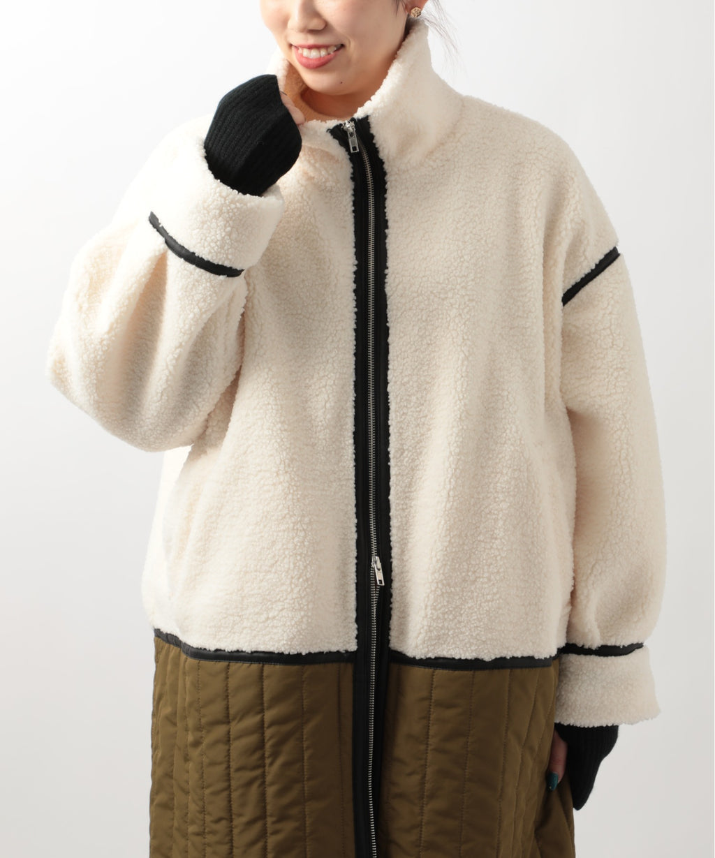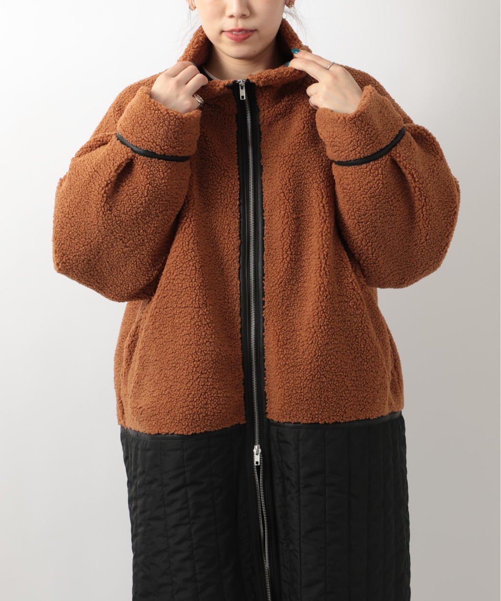 ふっくらモコモコの風合いのボアとキルティングを組み合わせたモードな雰囲気漂うロングコート。