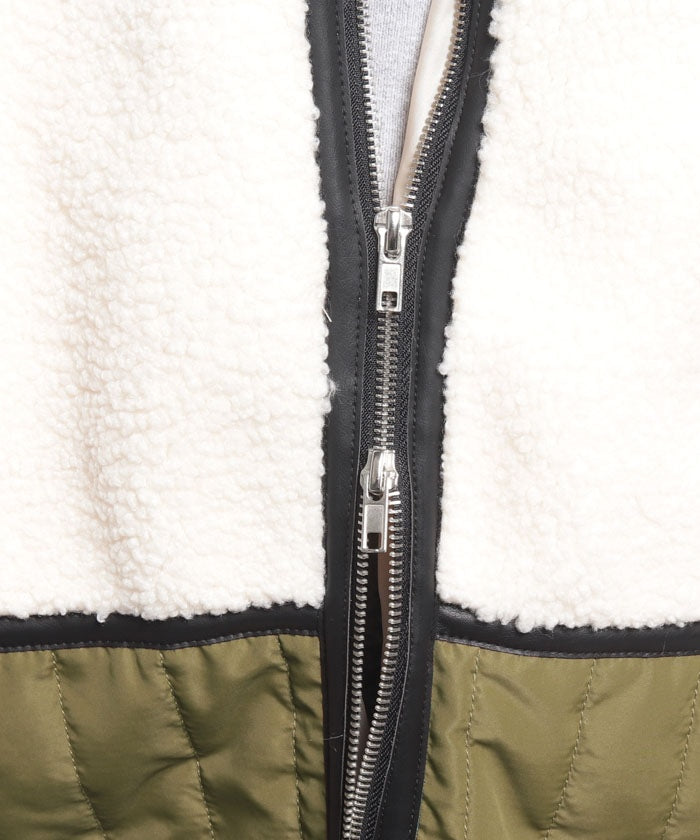 セットアップセブン SETUP7 【SETUP7】アウター コート Wジッパー ロングコート ボア キルティング スタンドカラー 異素材 防寒 trc