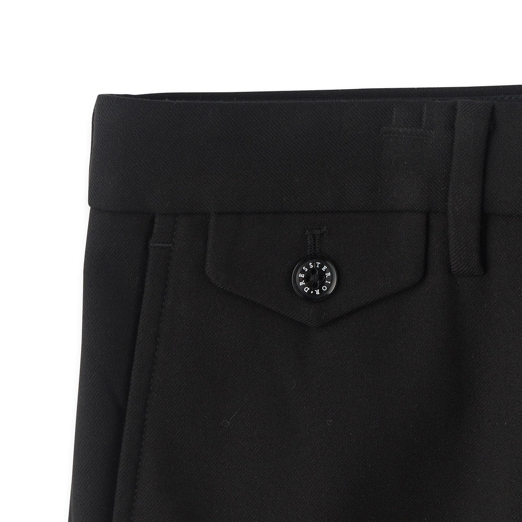 ヒップポケットに釦留めのフラップを加えることで中の物が落ちにくい設計で機能面もプラスしています。