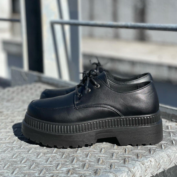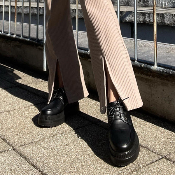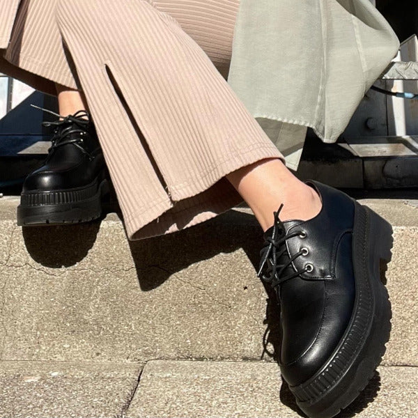 厚底なのに軽量のレースアップマニッシュシューズ。