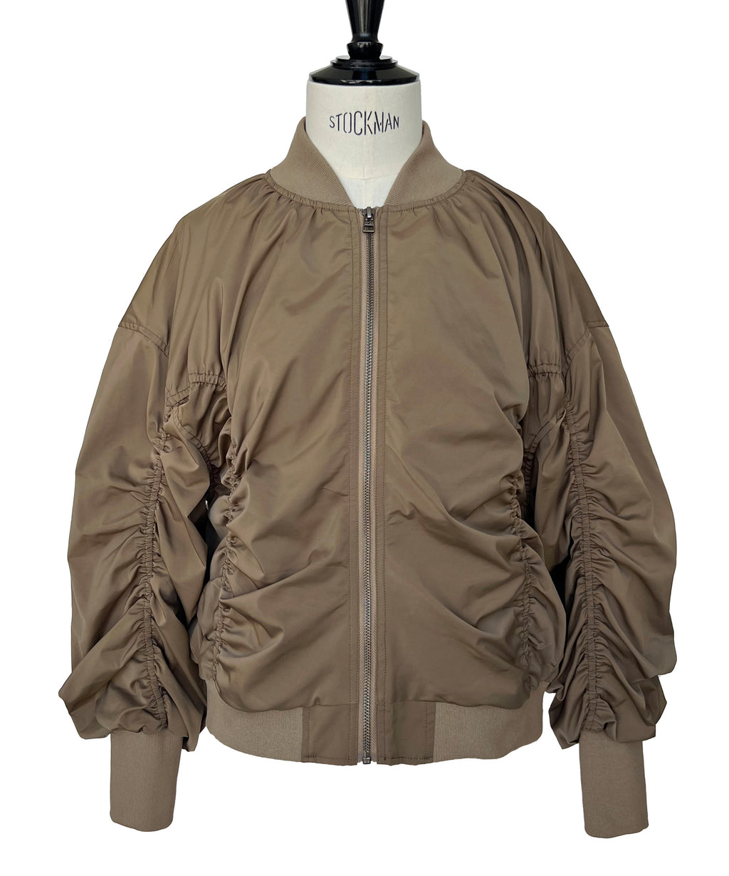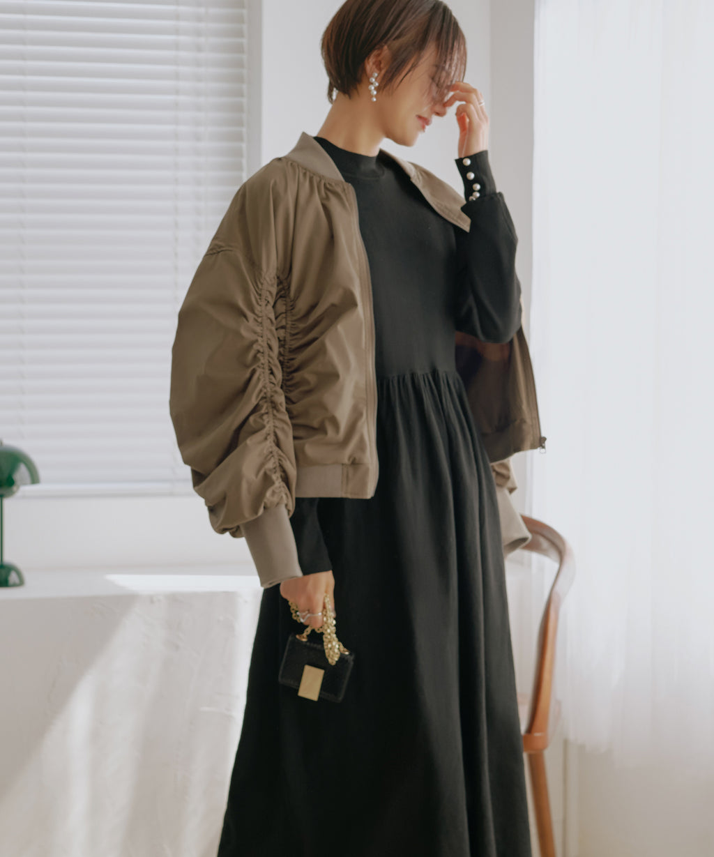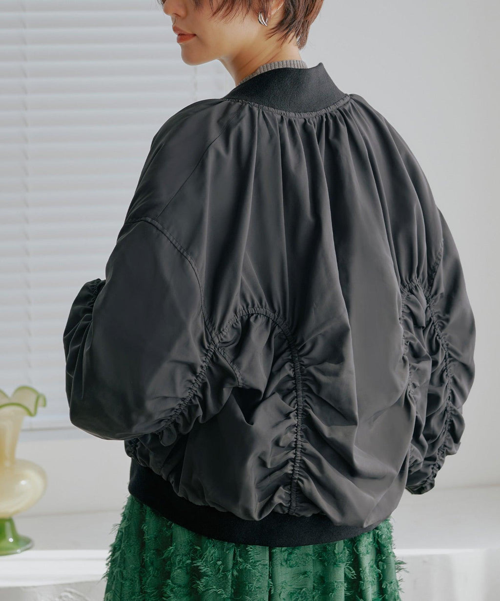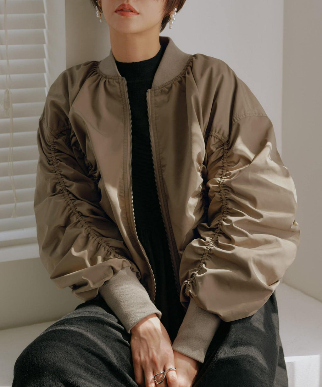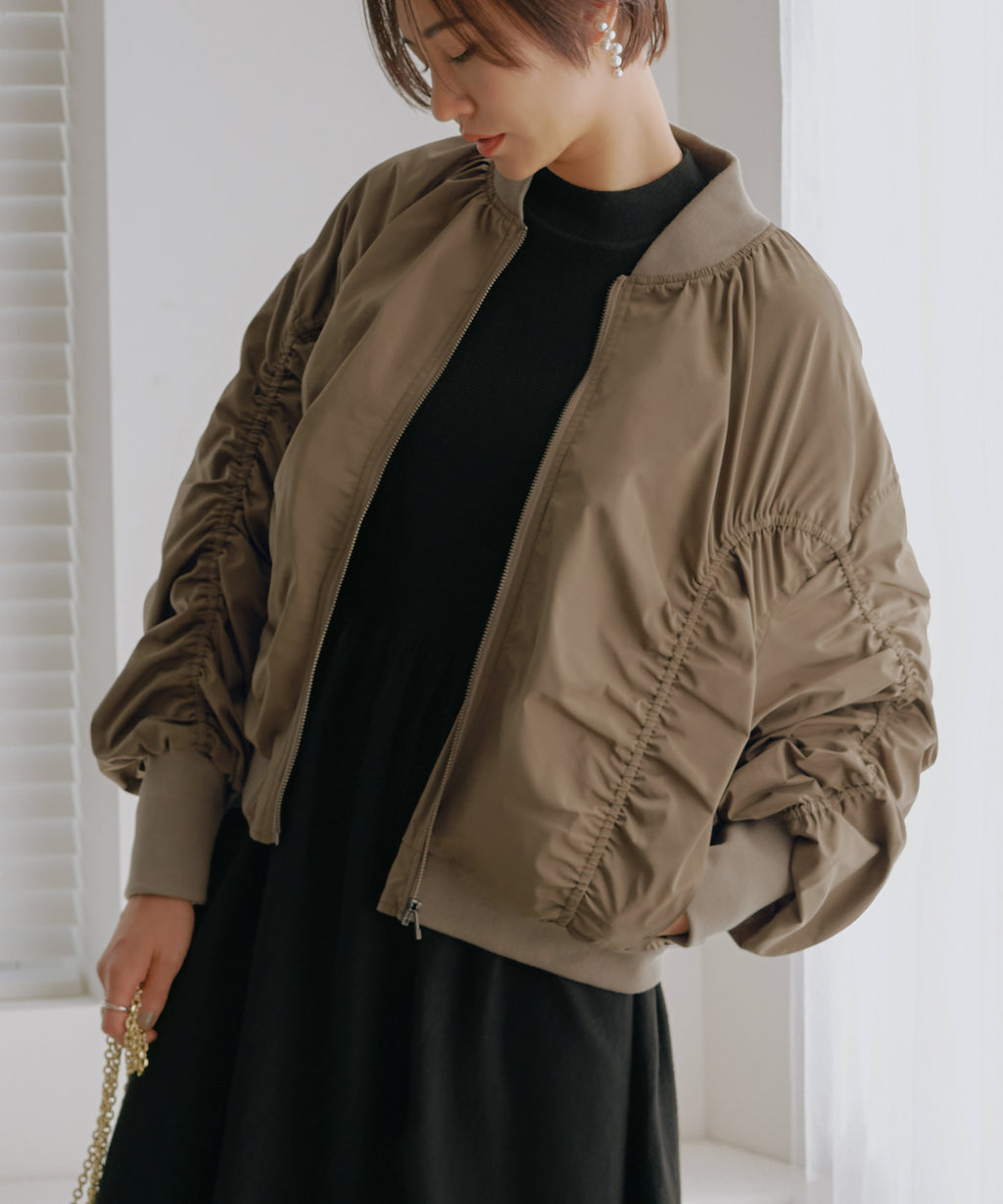 身頃から袖に施したシャーリングデザインがフェミニンなブルゾン。