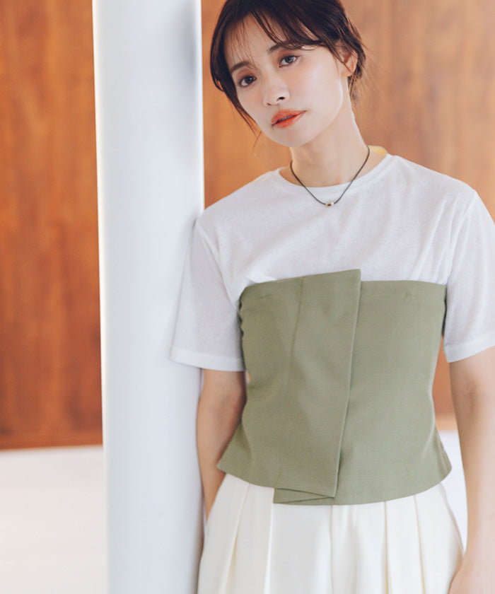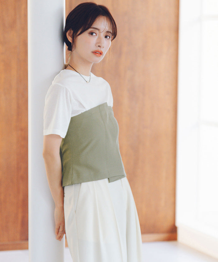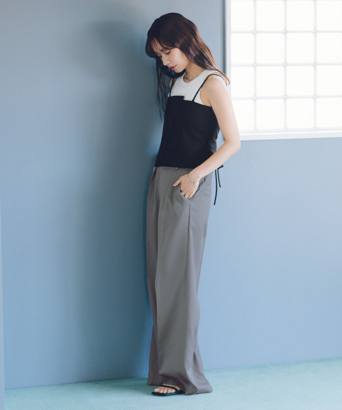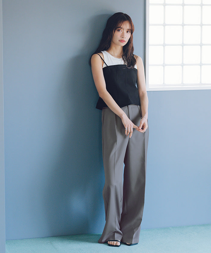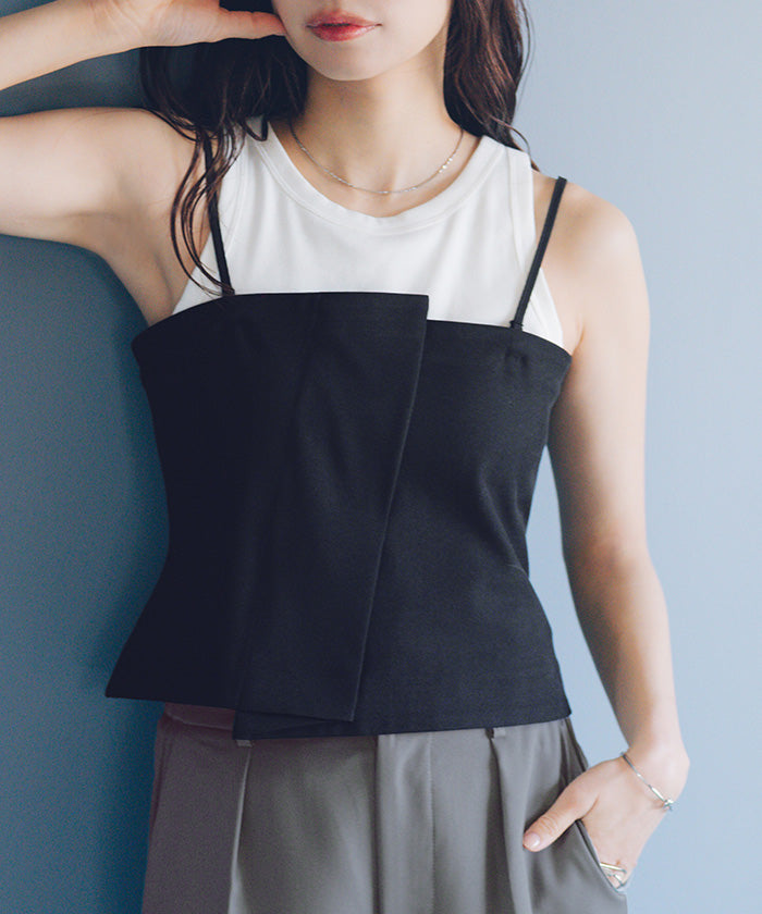 ・構築的な折り返しデザインでコーディネートのポイントになるキャミソールトップス