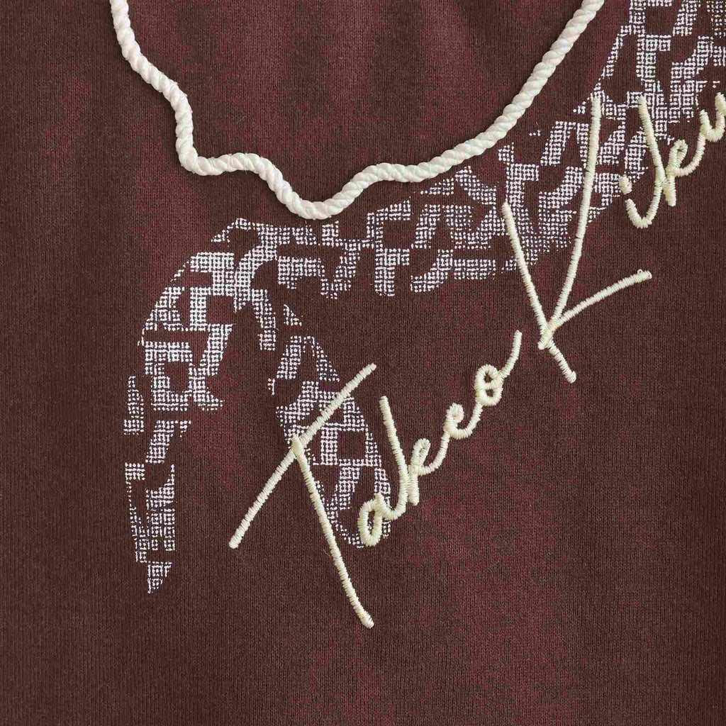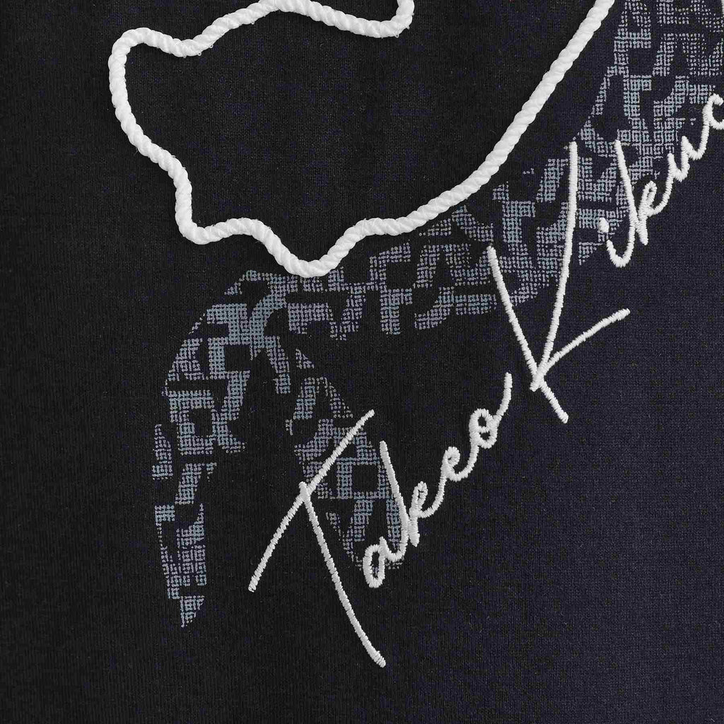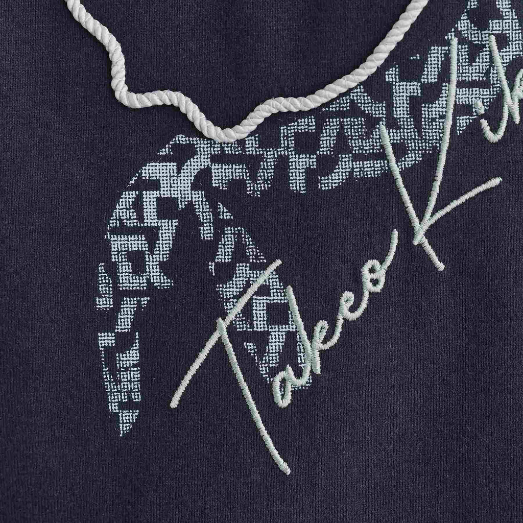 菊池武夫氏を一筆書きしたポップなモチーフを立体感あるロープ刺繍で表現。