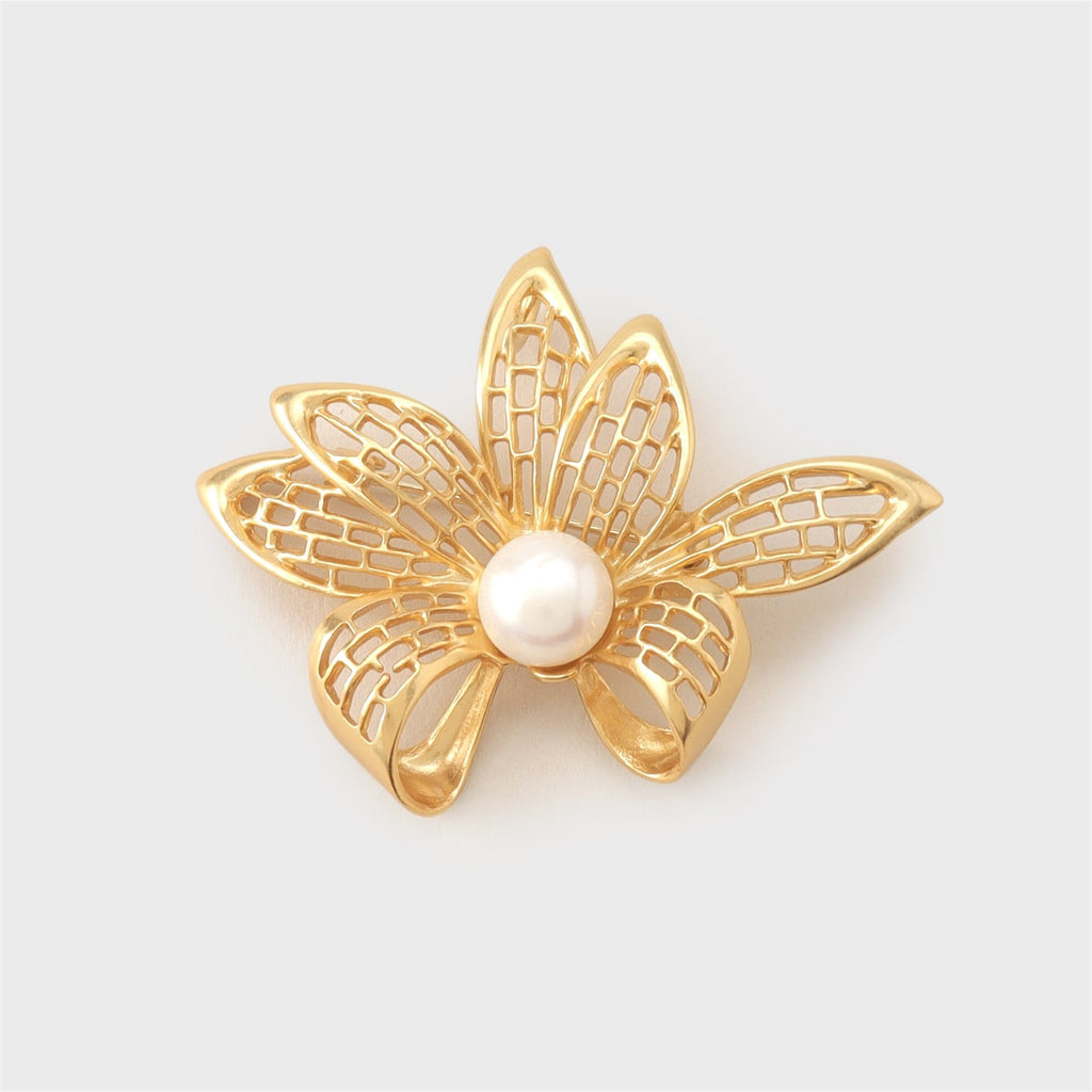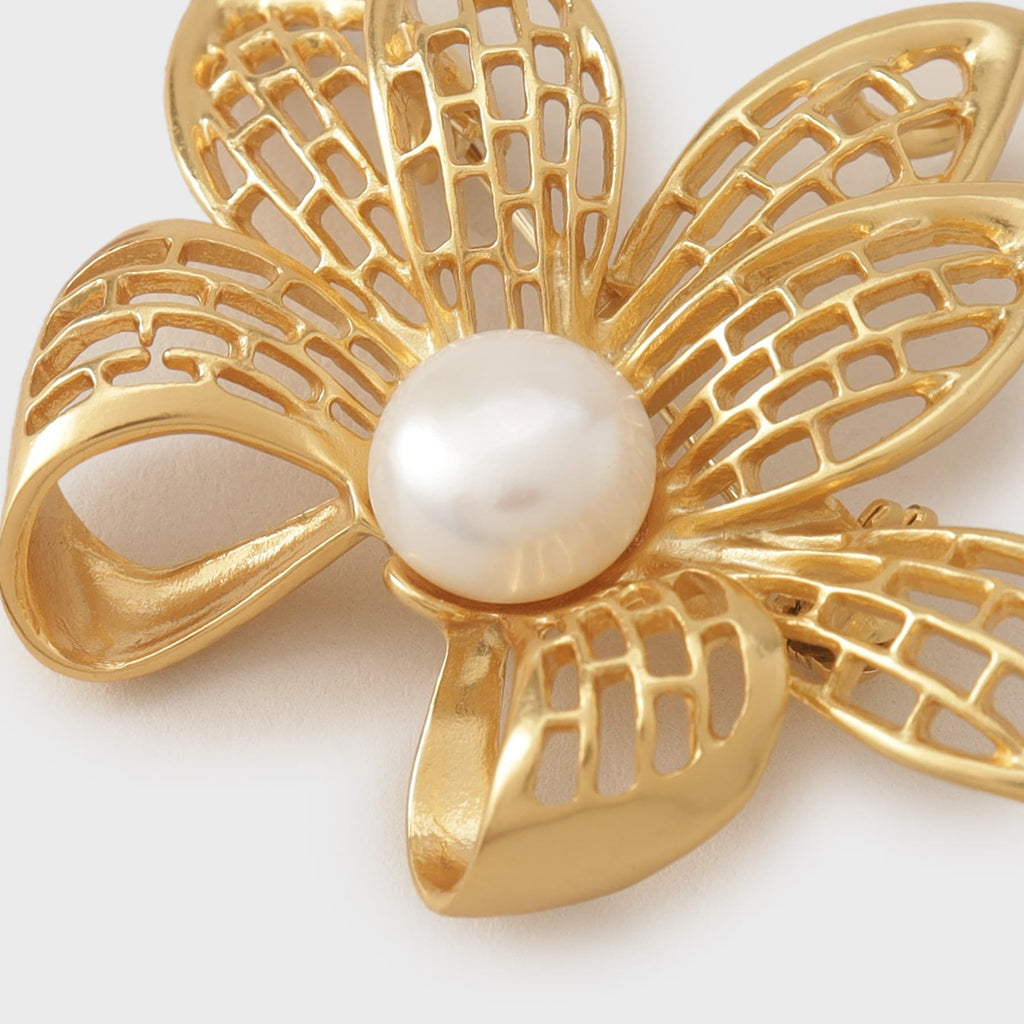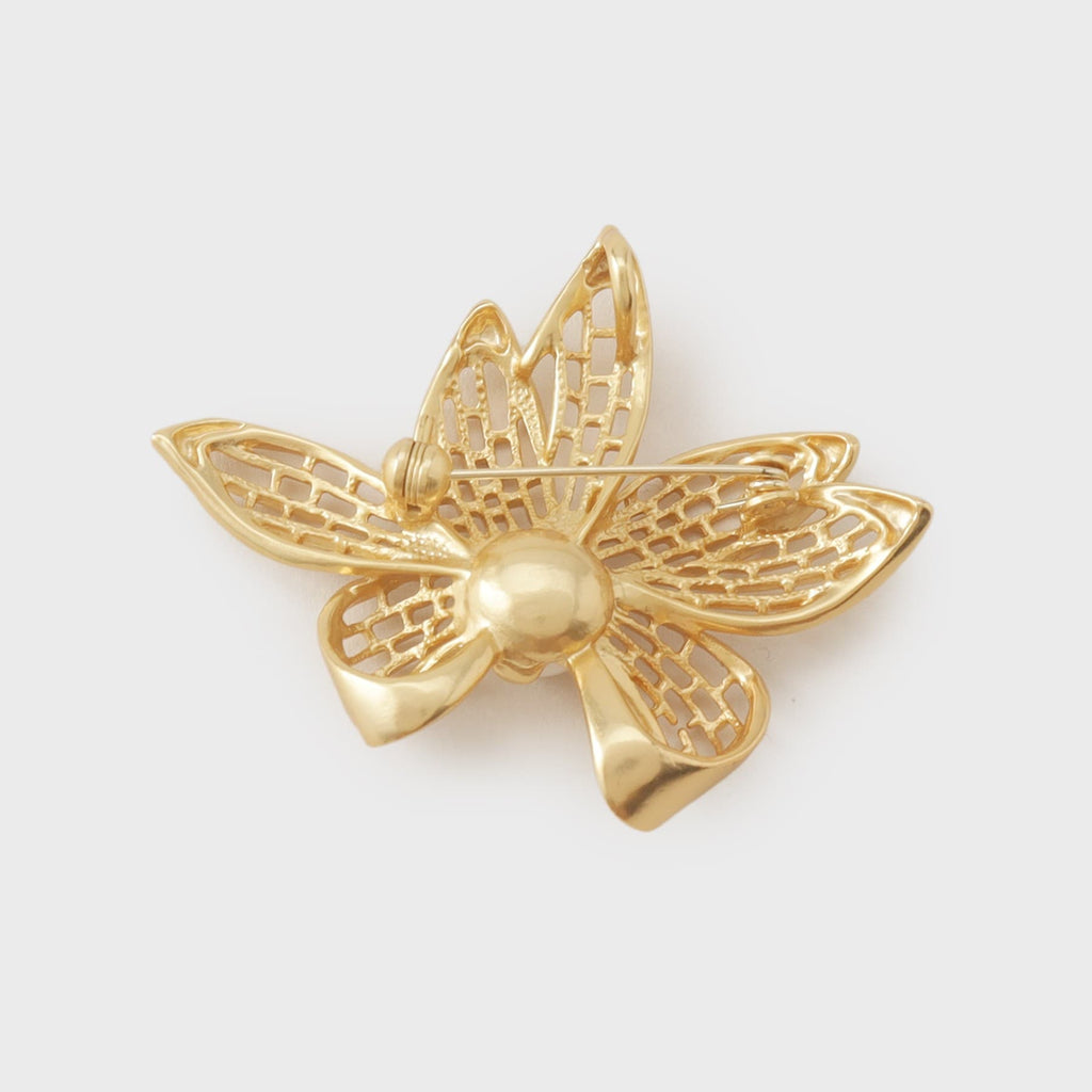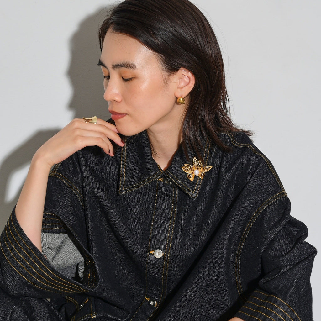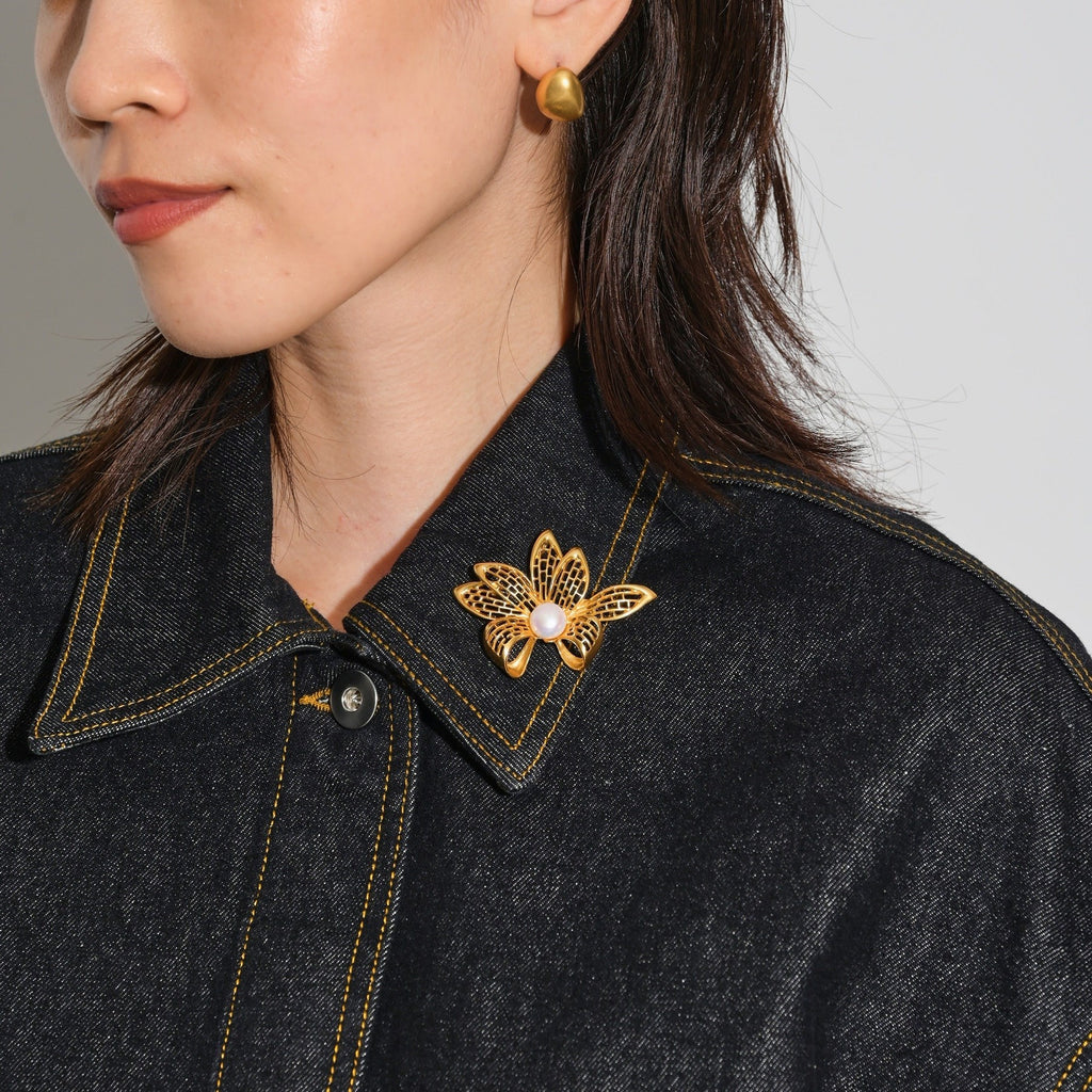存在感のあるゴールドカラーがこなれた印象を与えるブローチ。