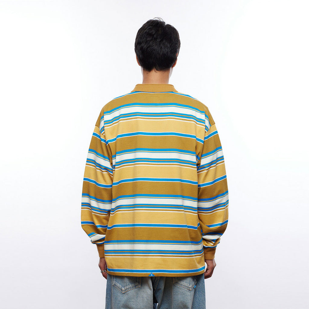 90年代を彷彿とさせる何とも雰囲気のある配色のボーダー天竺を用いたロングスリーブポロシャツ。