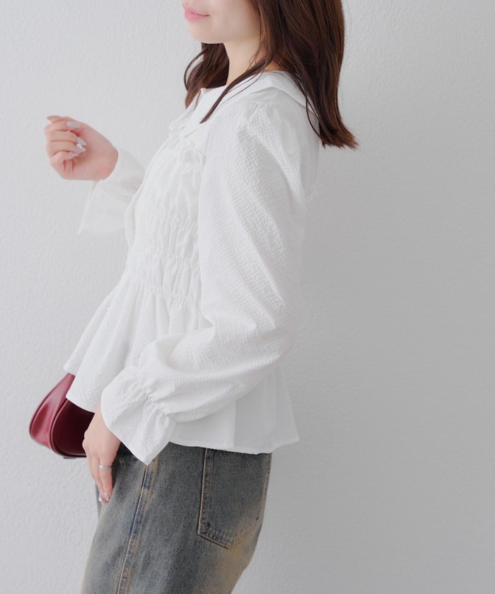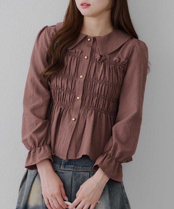 ・人気のシャーリングブラウスに長袖バージョンが登場♪