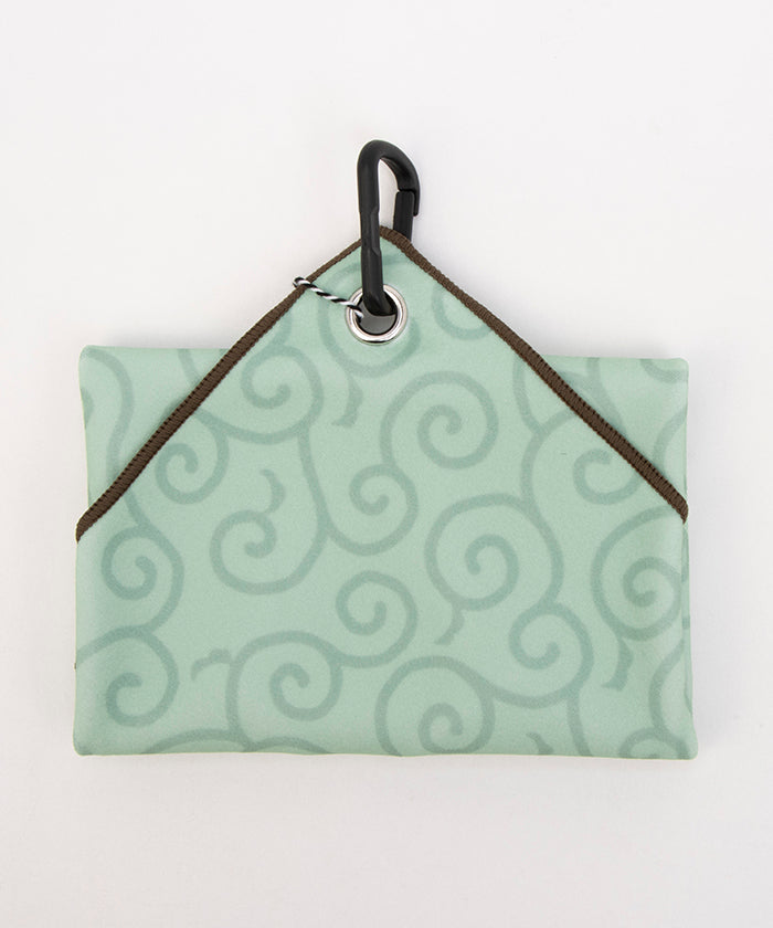 包むだけでポーチになる ぴたっとくっつく不思議なタオルです。