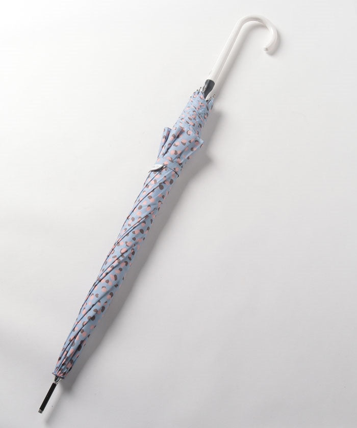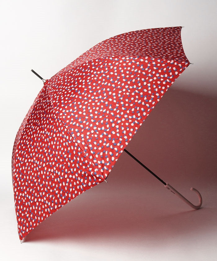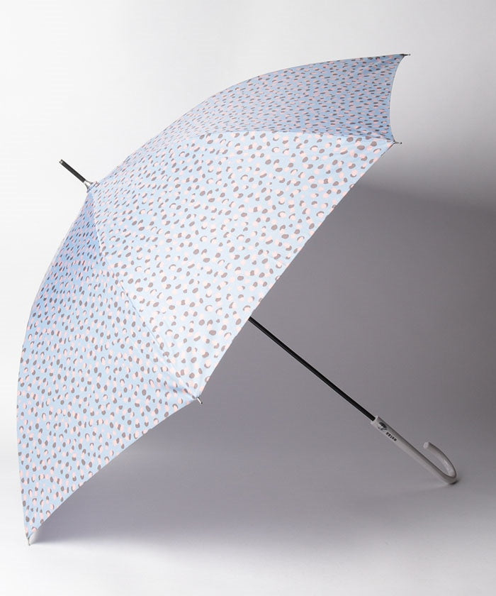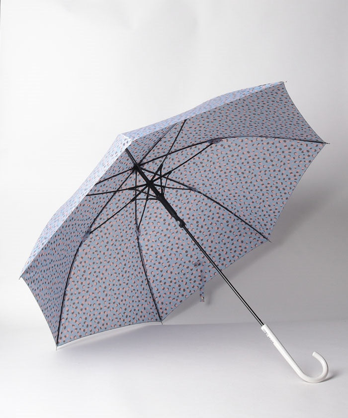 個性的なフォルムのドット柄をランダムに組み合わせ、キュートなインパクトを放つ傘。2色を重ねることで奥行きのあるデザインを演出します。デザインを邪魔しないシンプルで細身のハンドルも◎。オン・オフ問わず持ちたくなるアイテムです。