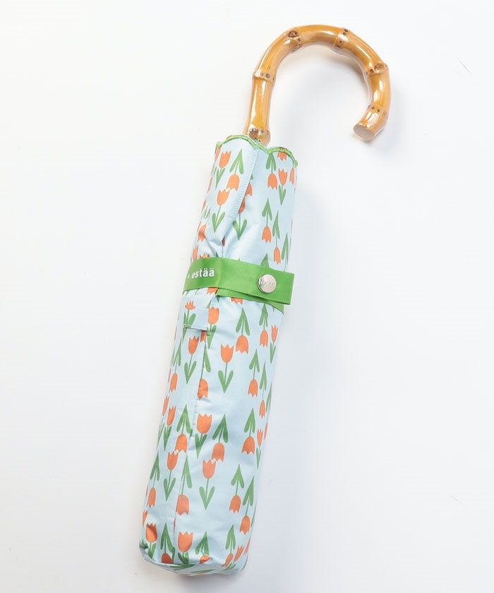 アデリアレトロの昭和レトロな可愛らしさがギュッと詰め込まれたコラボレーション折り畳み傘。チューリップのイラストがとってもキュートです。バンブー調のハンドルやスカラップしたアウトラインなどディテールまで抜かりなく。