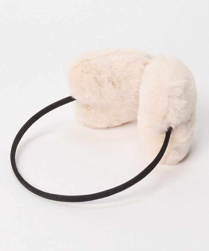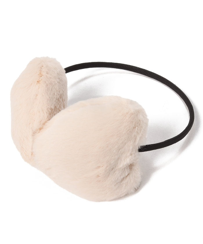 ふわもこ素材のハート型の耳あては、細アームとのコントラストでチャーミングな存在感を発揮。