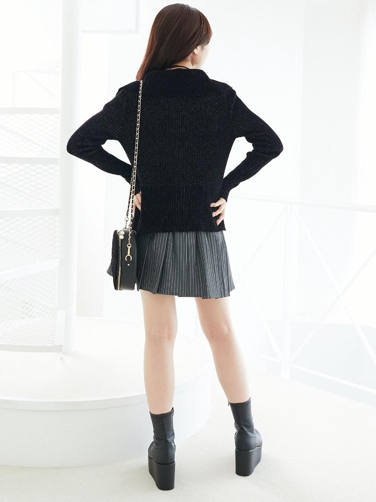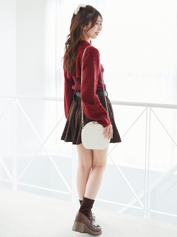 クロップド丈のニットやざっくりカーデを合わせたガーリーな気分のスタイリングがおすすめ。