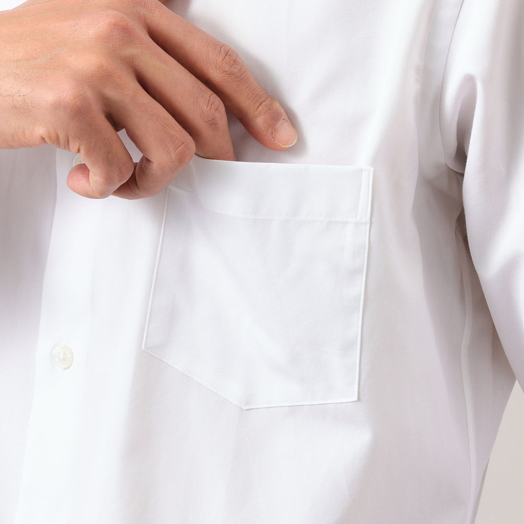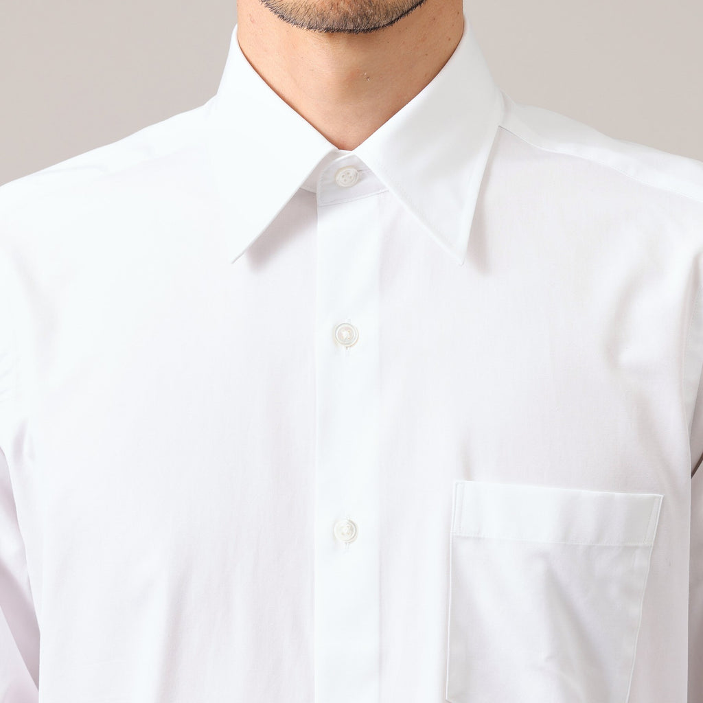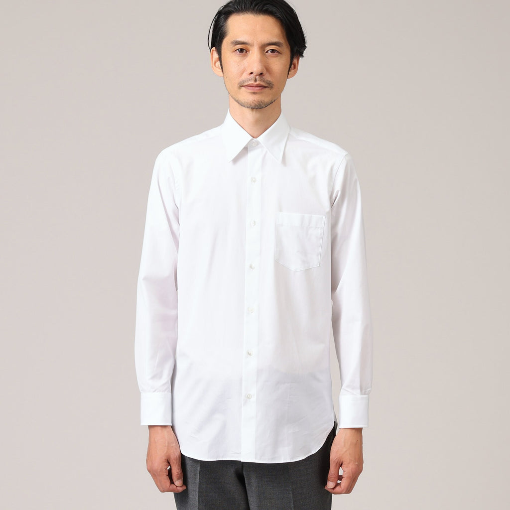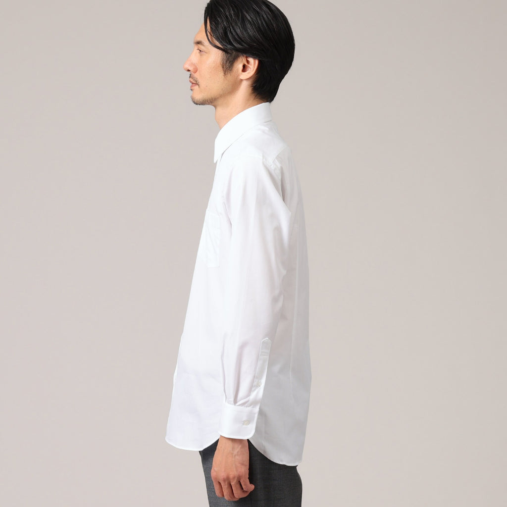 レギュラーカラーにホームベース型の胸ポケットのドレスシャツ。
