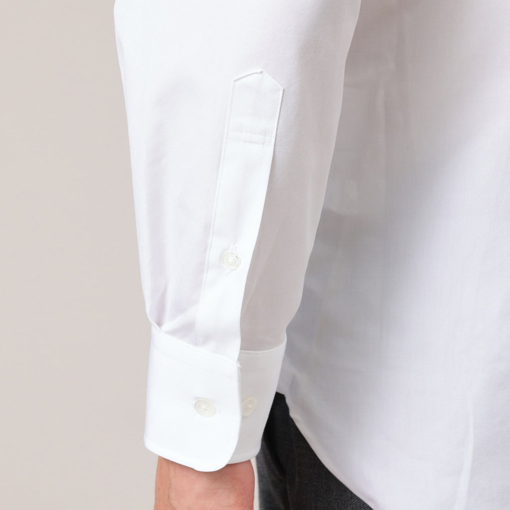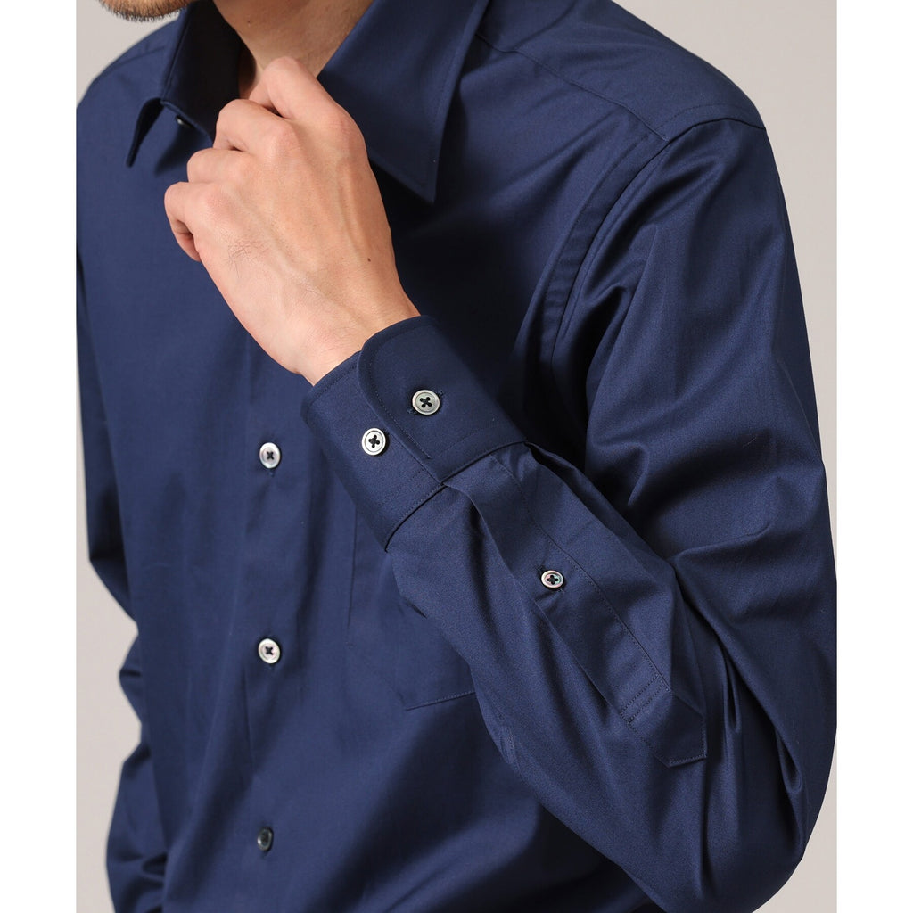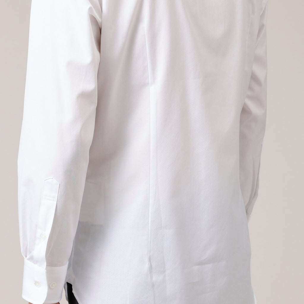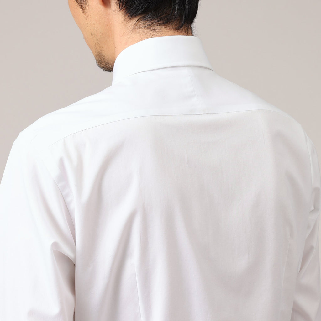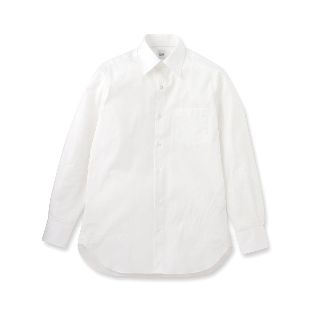レギュラーカラーにホームベース型の胸ポケットのドレスシャツ。