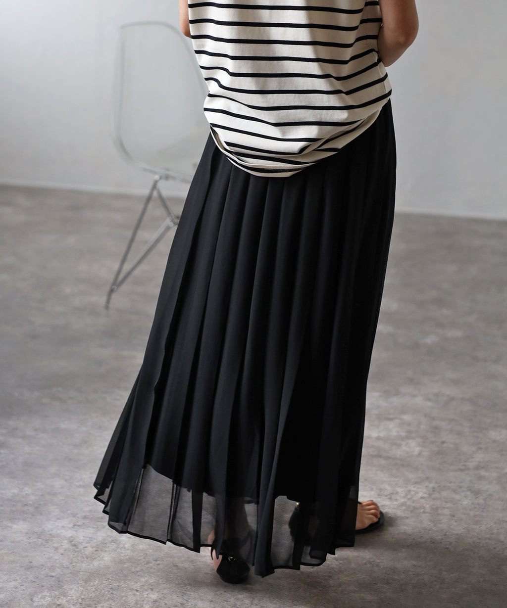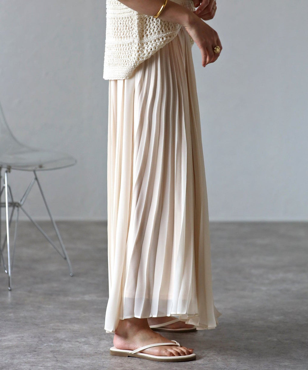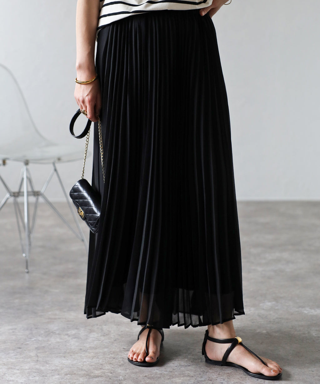 落ち感のあるジョーゼット素材が上品なプリーツスカート。