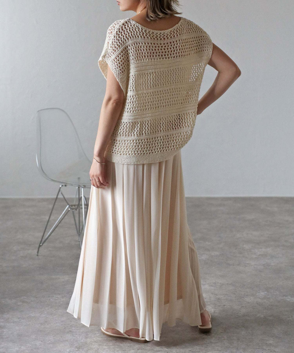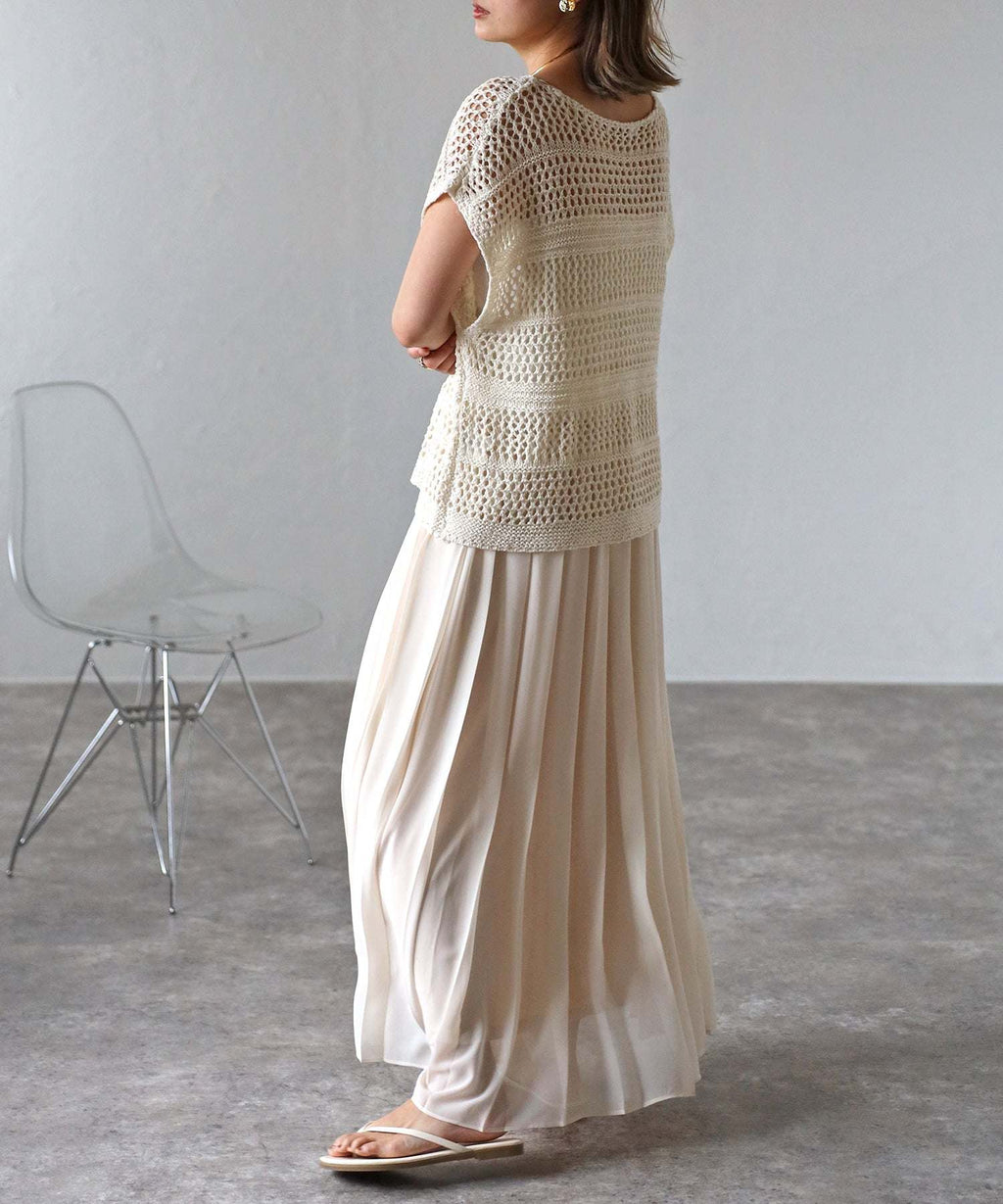 幅の違うプリーツはウエスト部分を回せば、気分によって見え方を変えて着用いただけます。