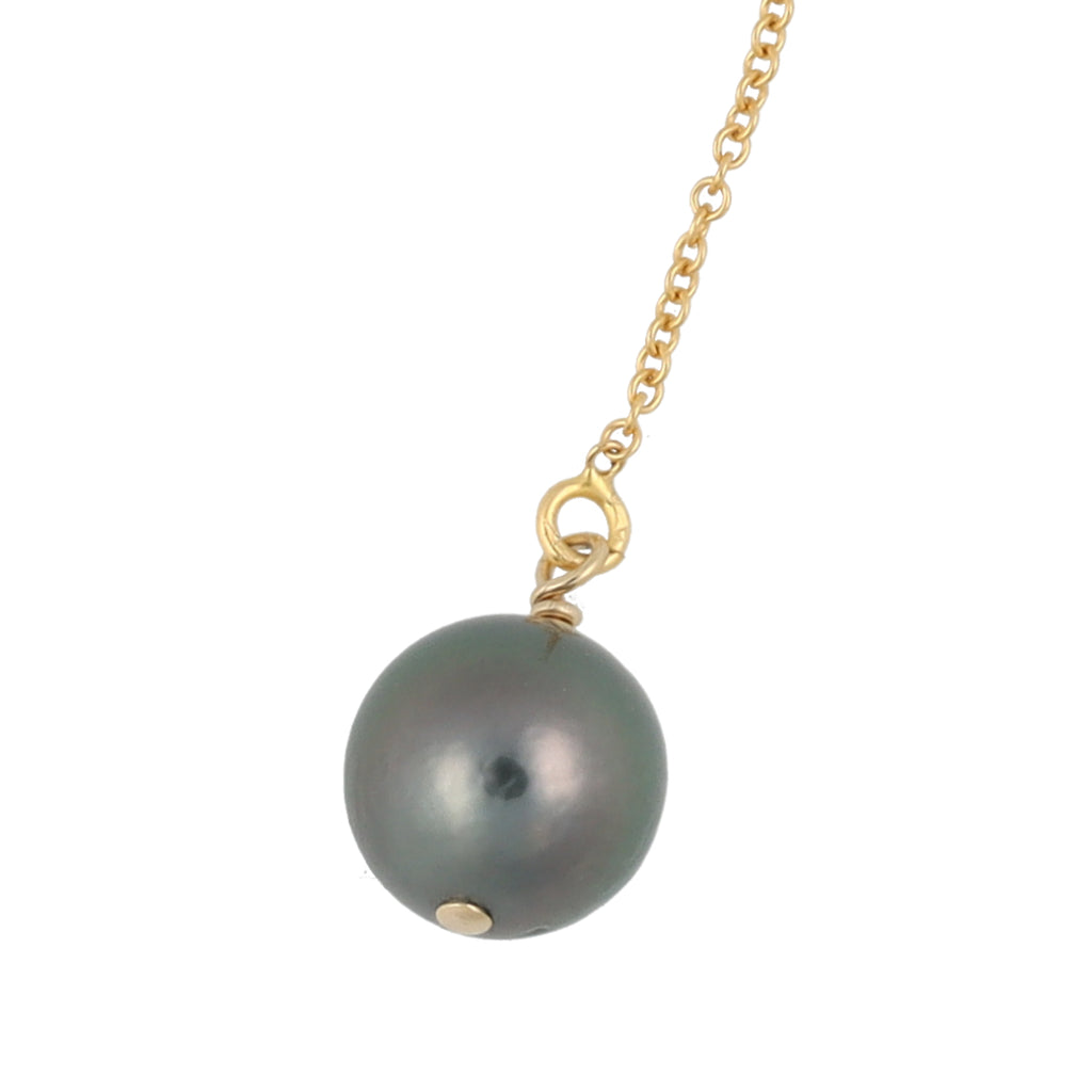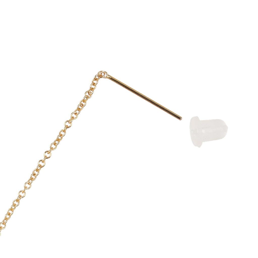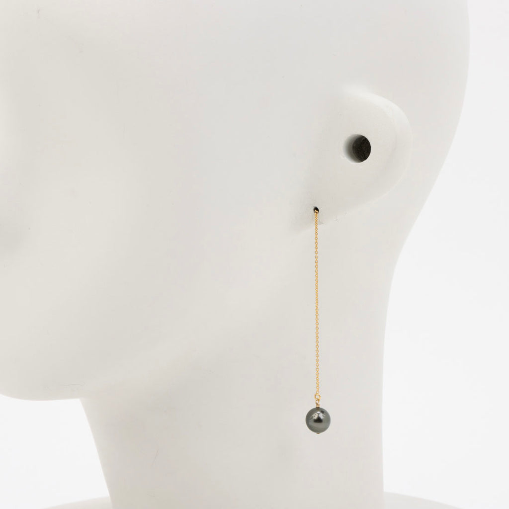 繊細なチェーンに一粒のパールをあしらったロングピアスです。